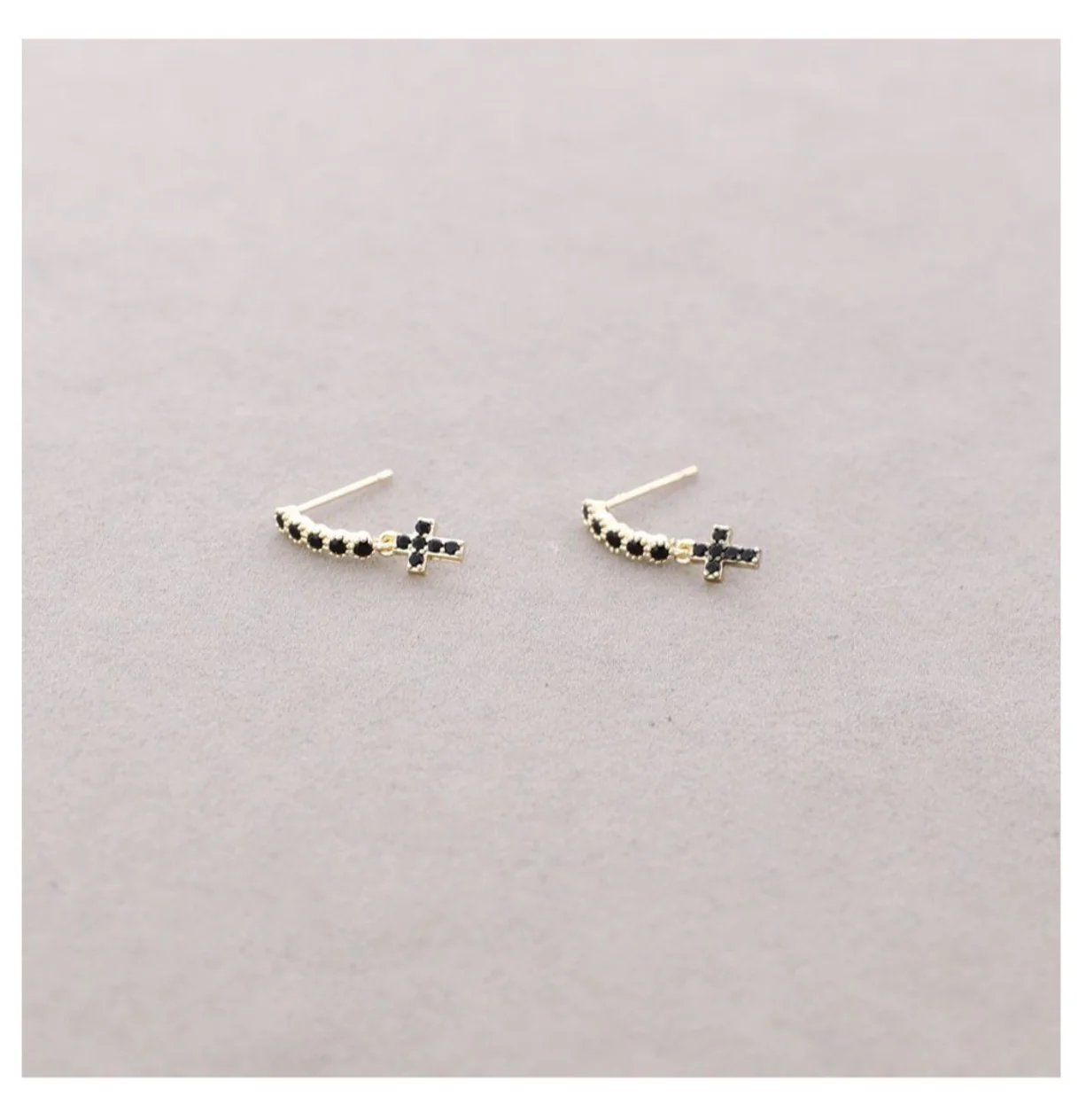 PENDIENTES PRESIÓN COLGANTE CRUZ CRISTALES
