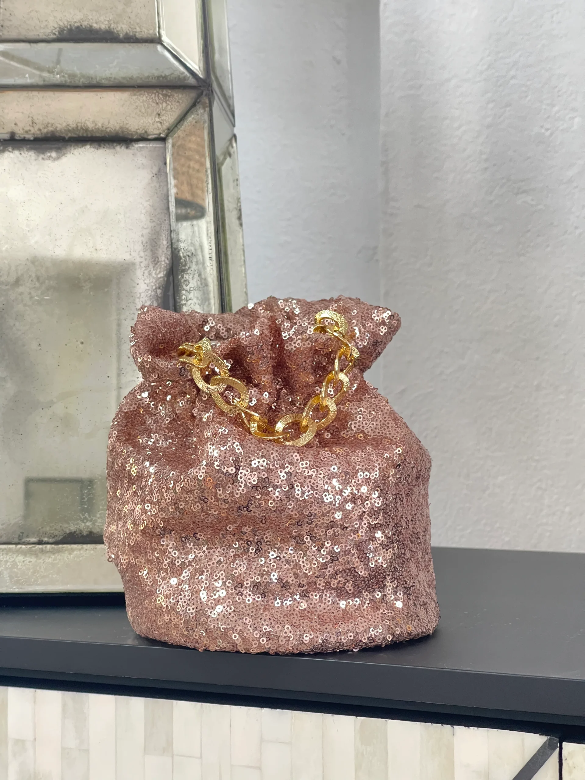 Bombonera Lentejuelas Oro Rosado