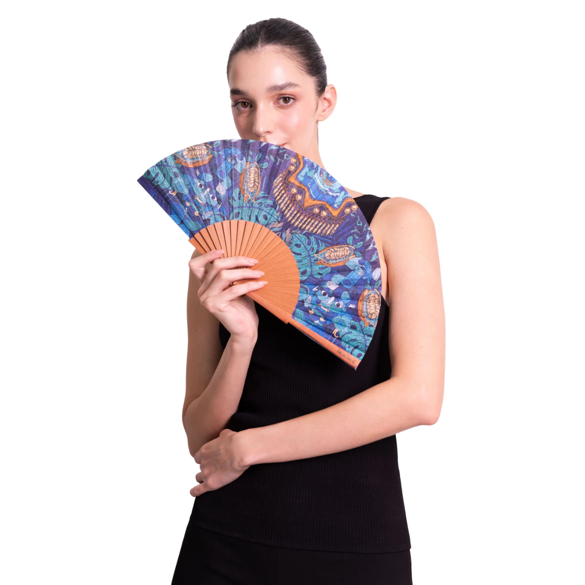 Iik, del maya ‘viento’. Abanico estampado, ideal para regalar o lucir en cualquier ocasión. Incluye funda para proteger del polvo.