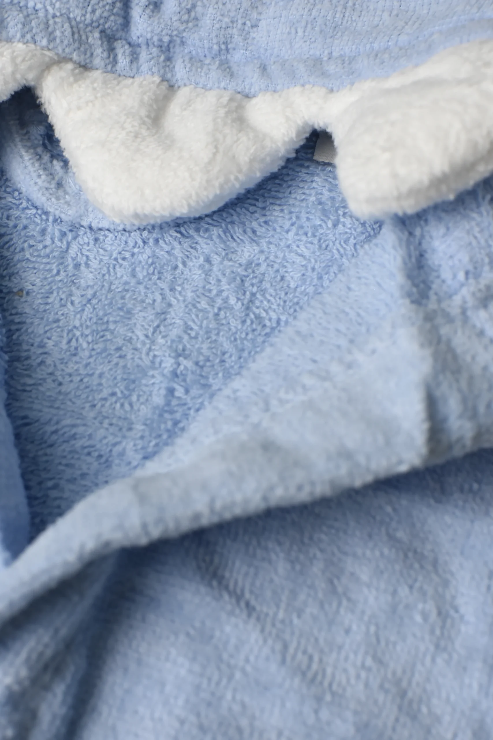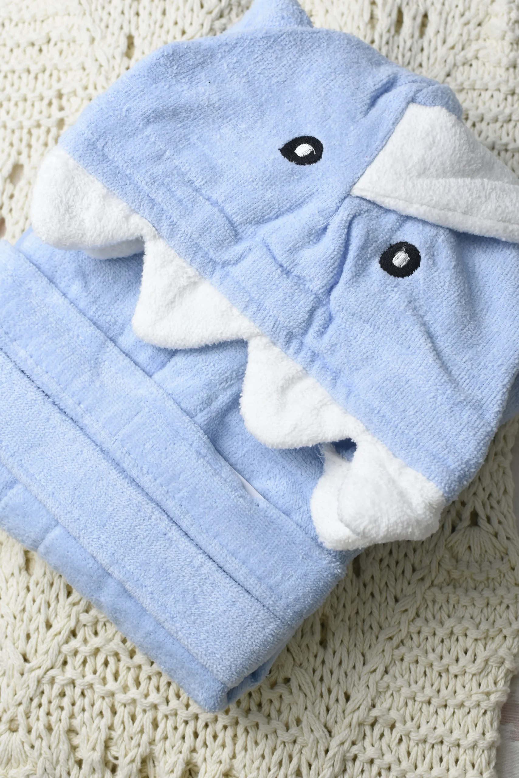 Albornoz con capucha en forma de tibur贸n con detalles bordados.
