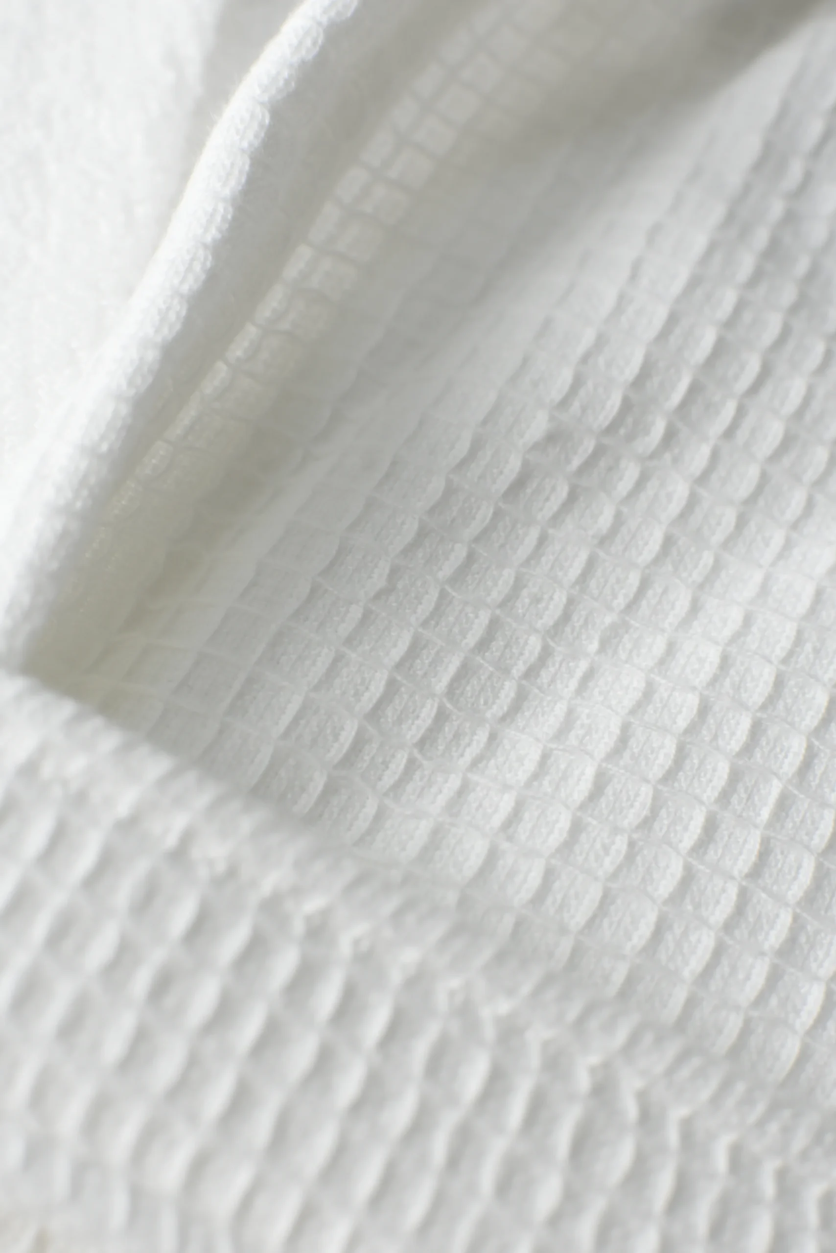 Fabricado con un rizo suave en su parte interior y tejido waffle en su parte exterior lo hace especialmente agradable al tacto, consiguiendo que el momento de secarte sea un experiencia agradable y relajante.