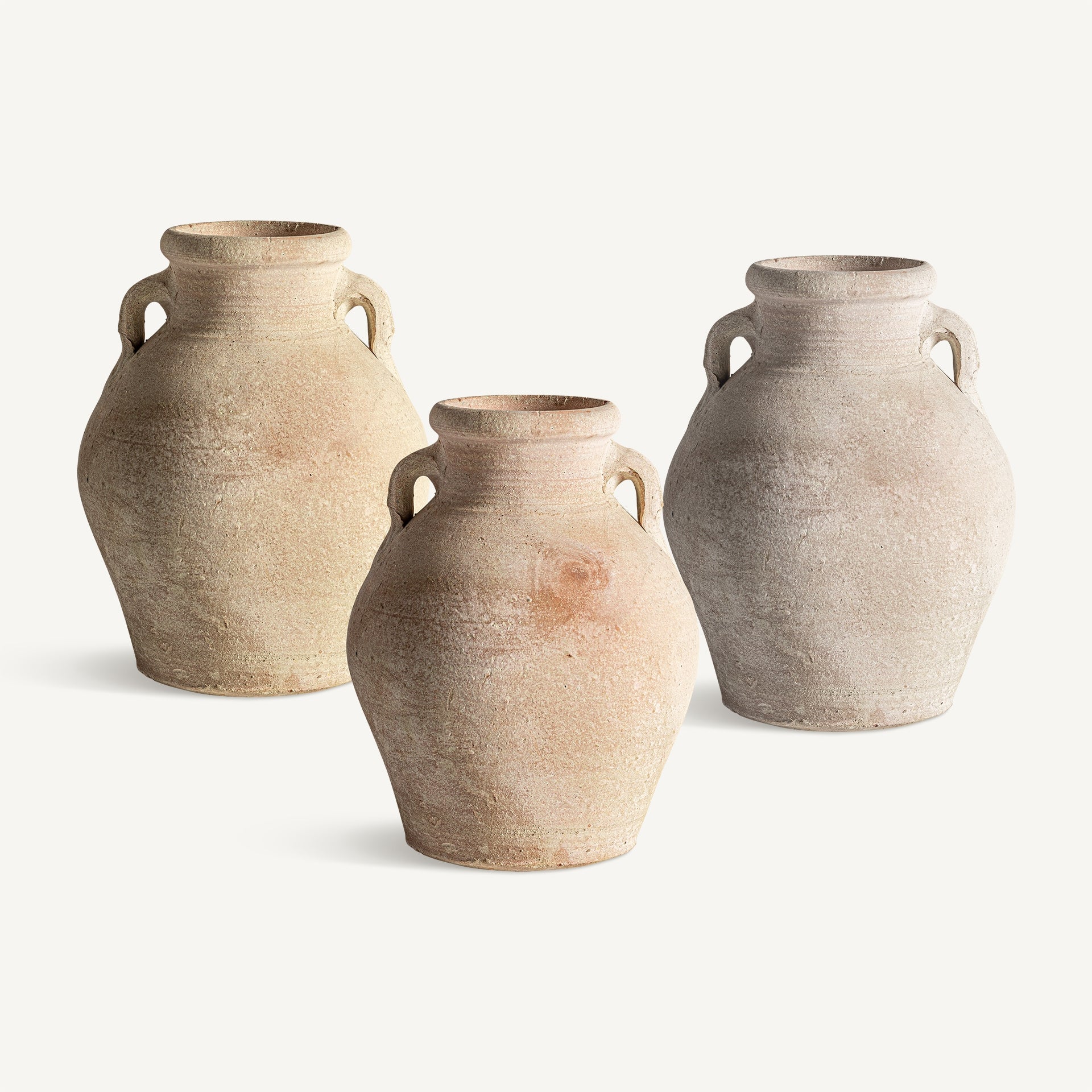 Ánfora Hanói, en color marrón envejecido, de estilo vintage. Fabricado en arcilla.