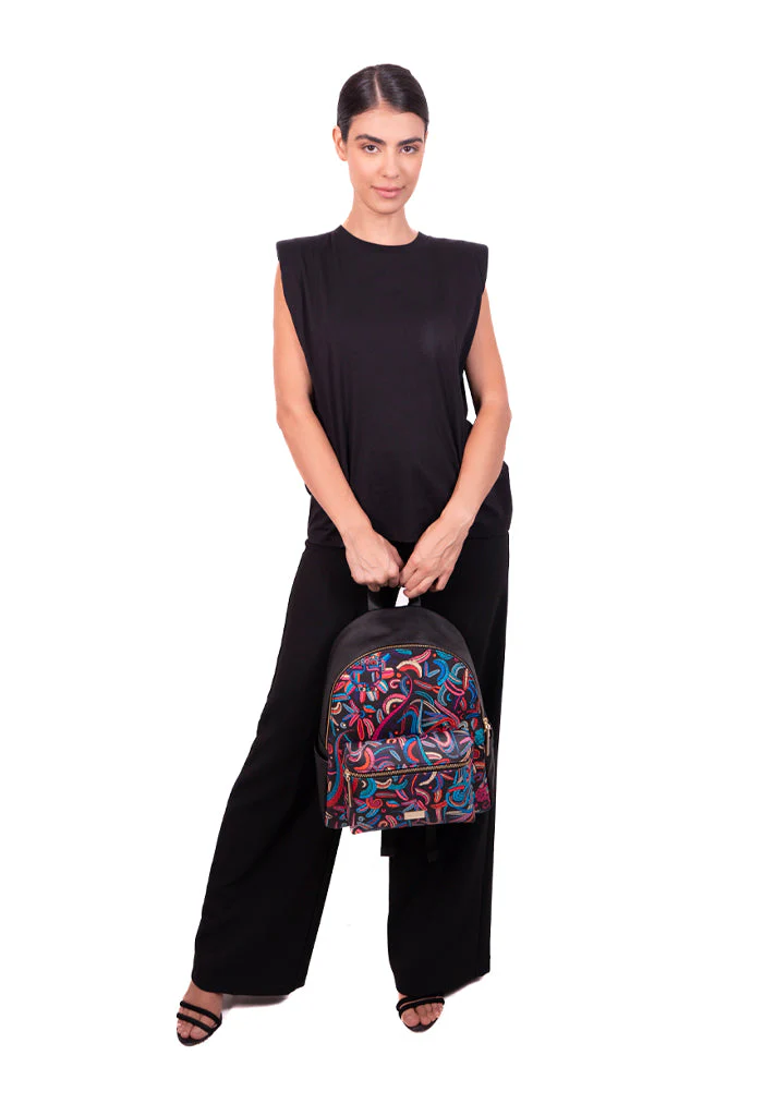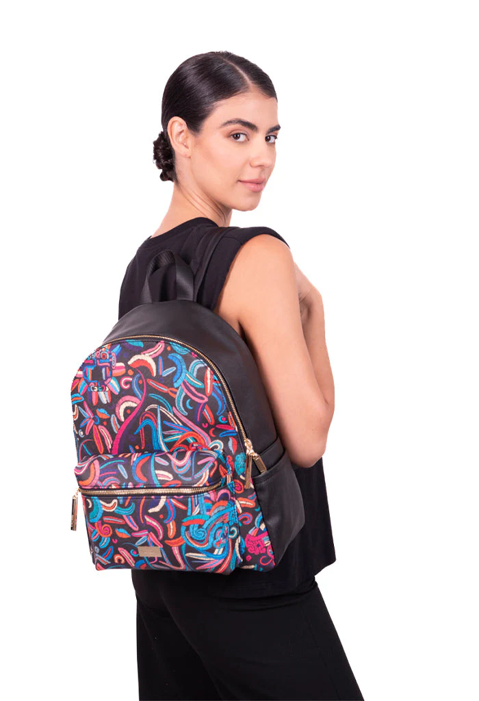 Nuuk, del maya ‘grande’. Bolsa tipo ‘backpack’ en acabado saffiano con compartimento adicional al frente.