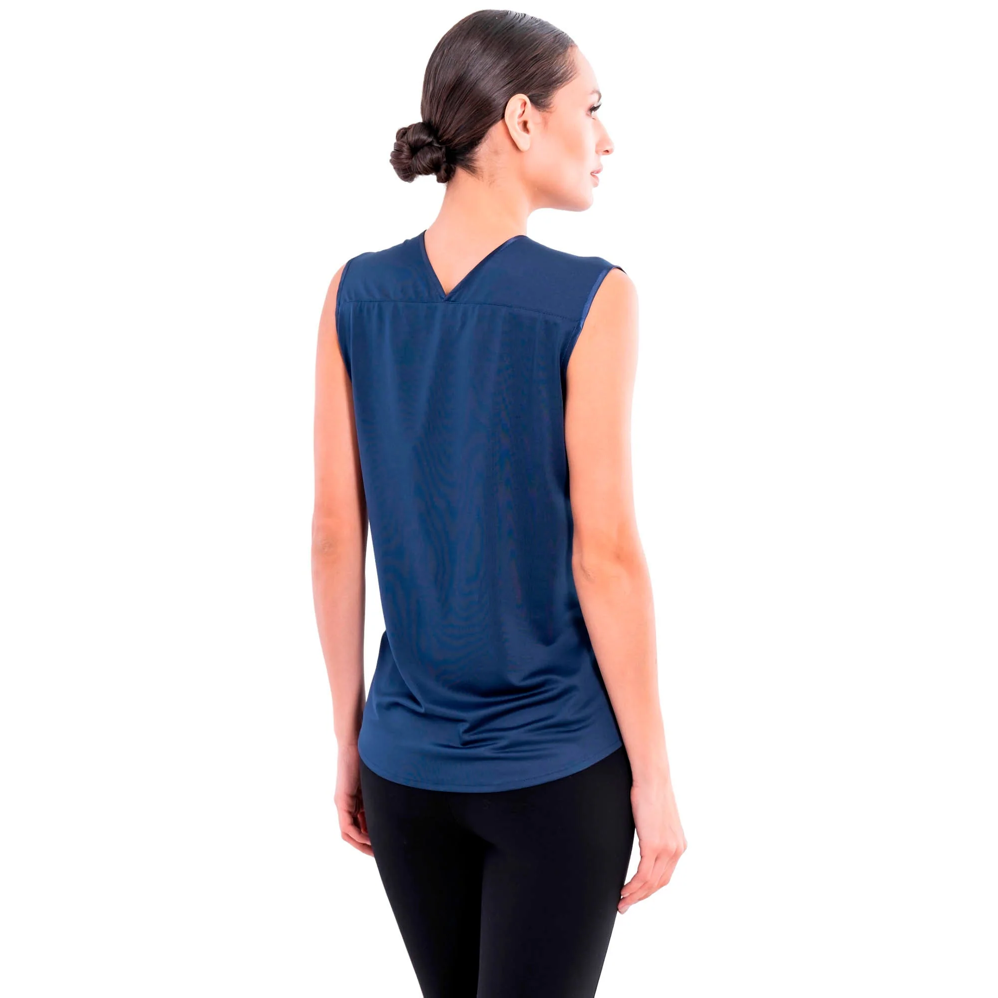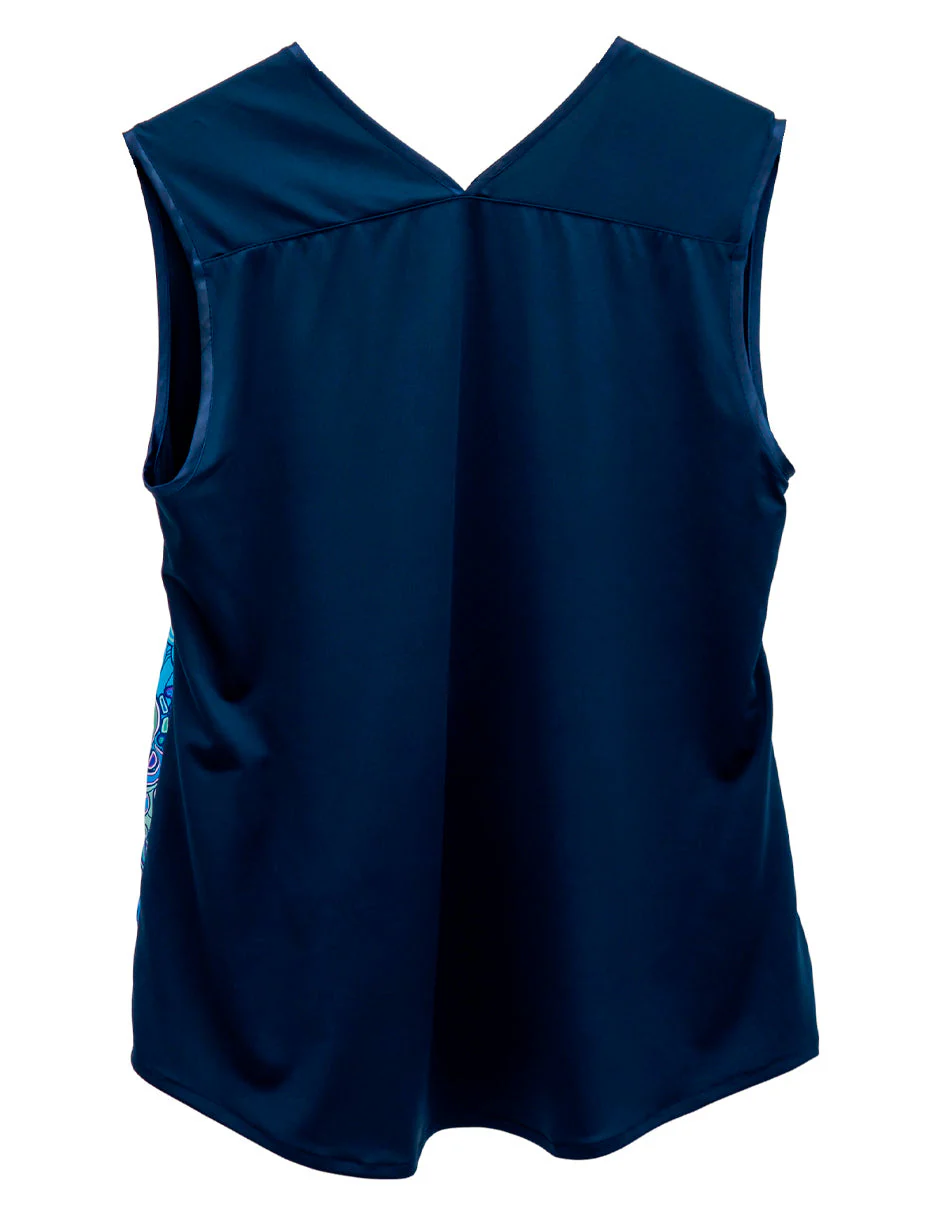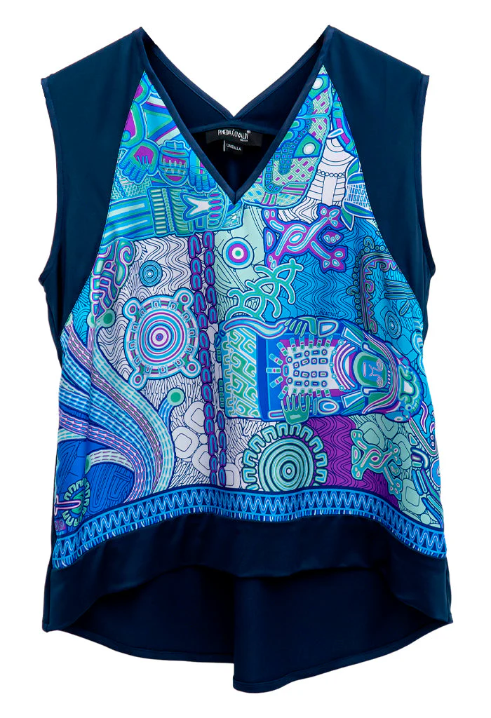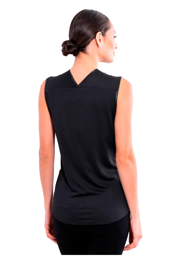 Blusa con escote en ‘V’, sin mangas, con panel estampado en la parte delantera a contraste.