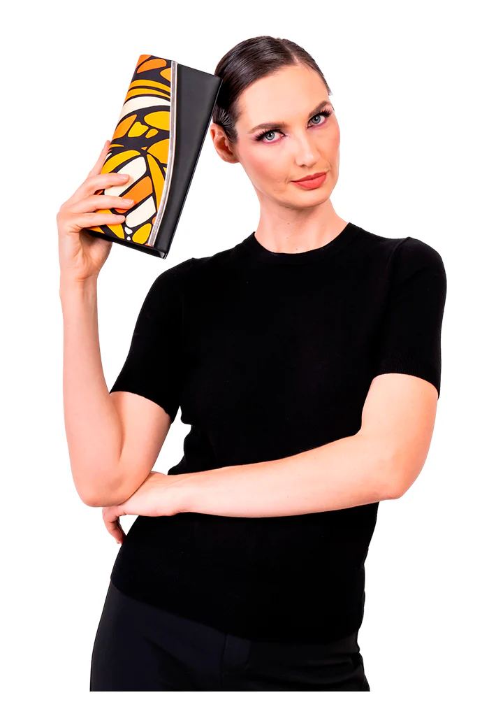Akbal, del maya ‘noche’. Bolsa estructurada tipo clutch.