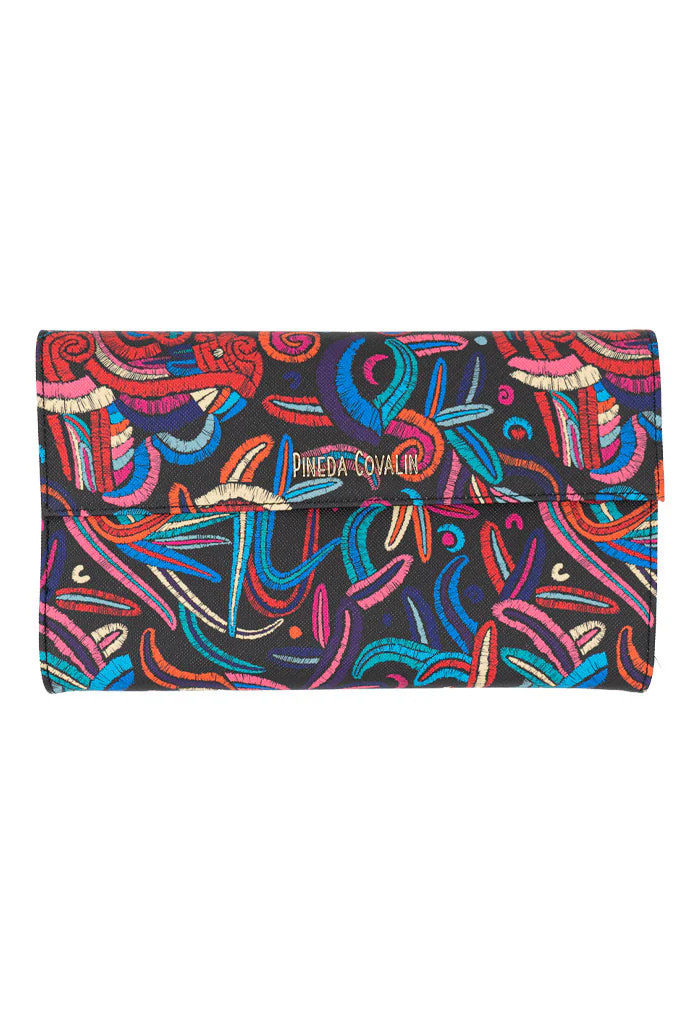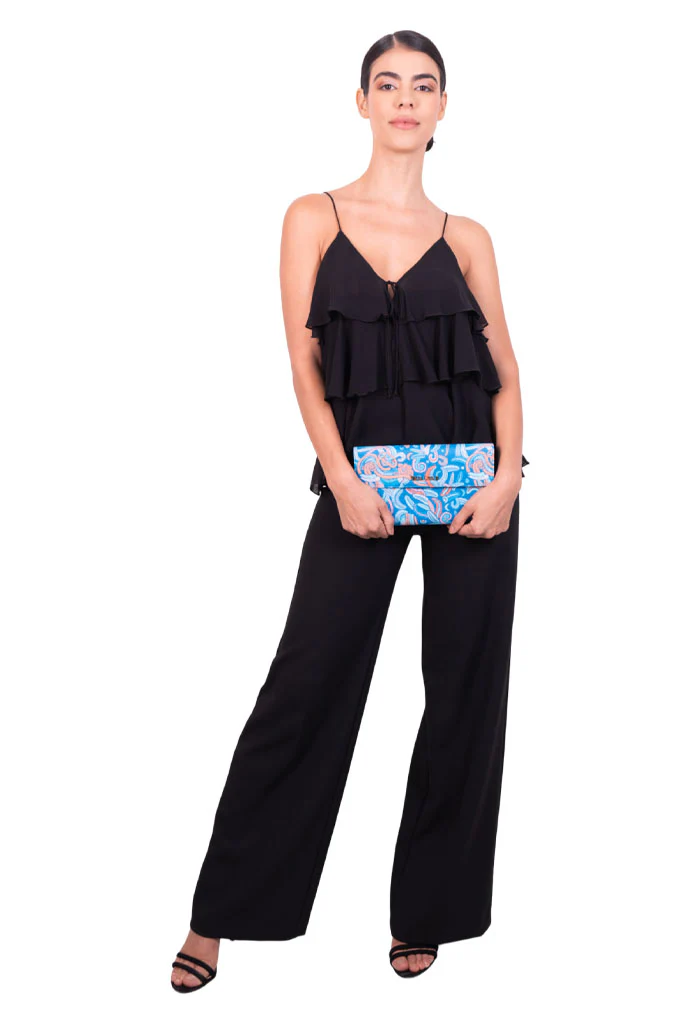 Baas, del maya ‘baúl’. Bolsa estilo clutch. Incluye compartimentos para almacenar tarjetas y cierre interior.