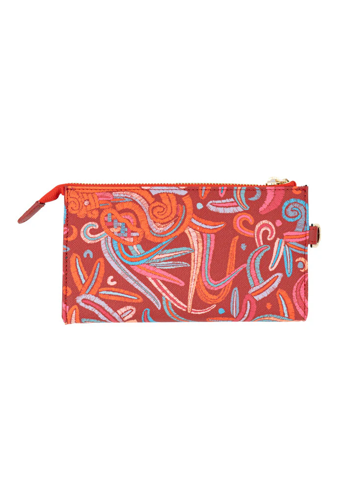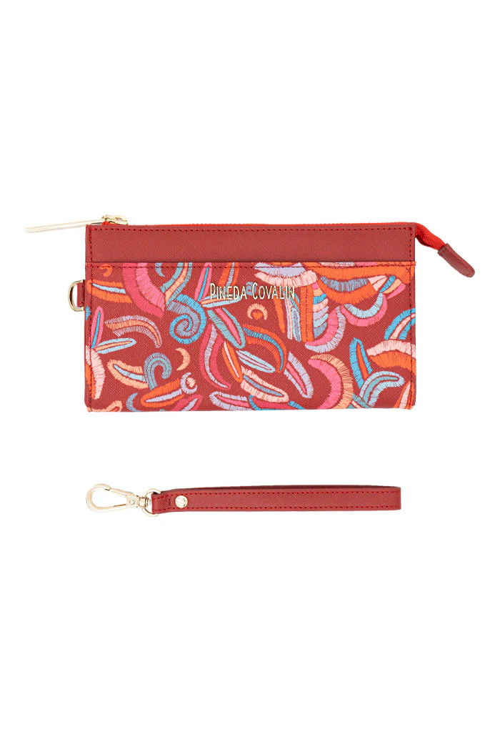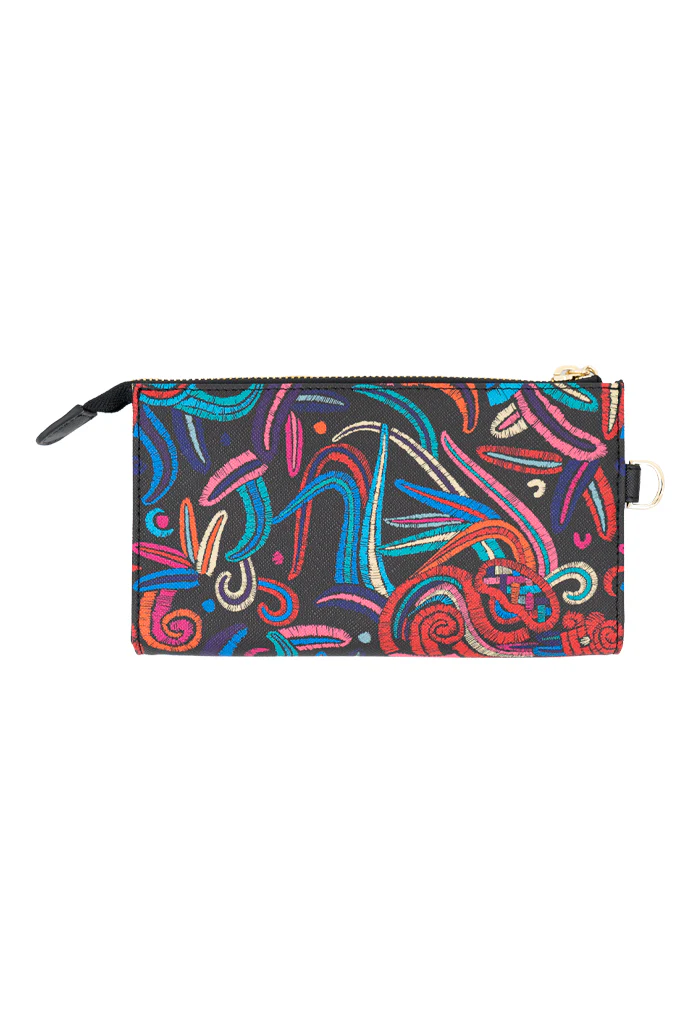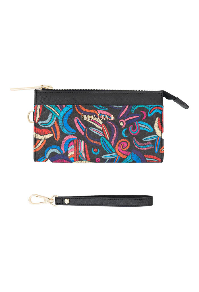 Cheen, del maya ‘fácil’. Bolsa multifuncional estilo wristlet con asa removible para convertirla en cartera. Incluye compartimentos para almacenar tarjetas y cierre interior.