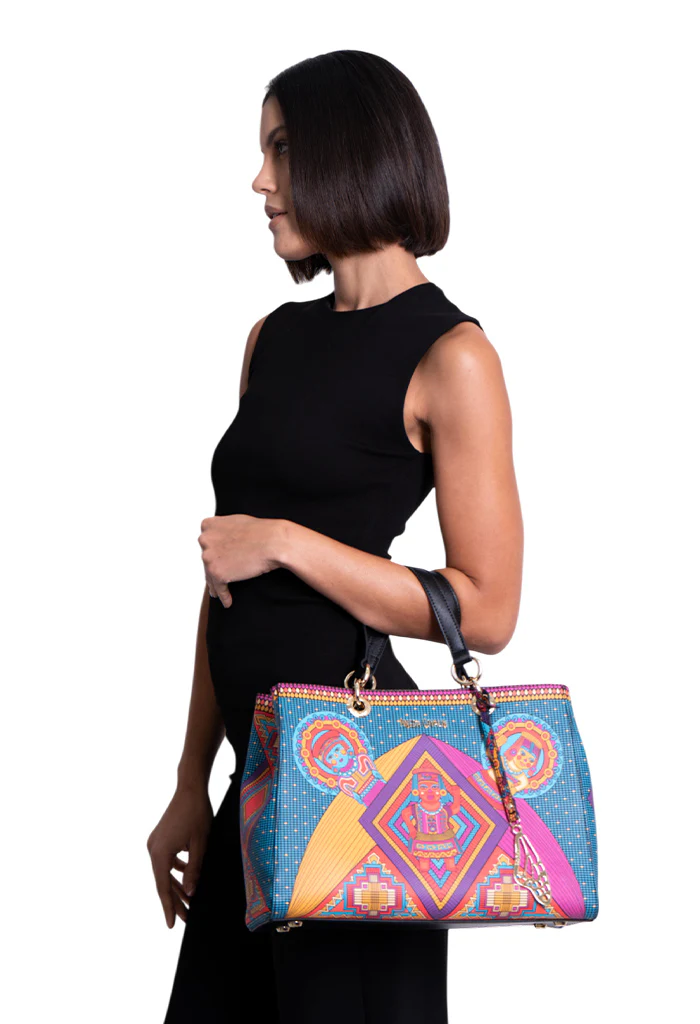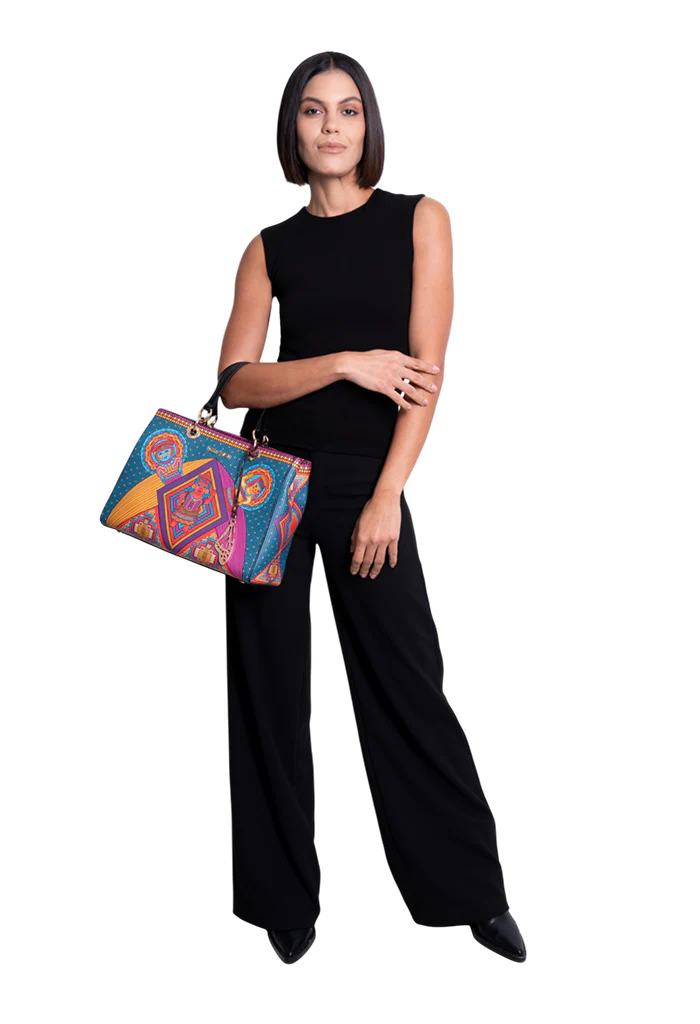 Bolsa estilo satchel. Incluye asa corta y asa larga removible para llevar al hombro.