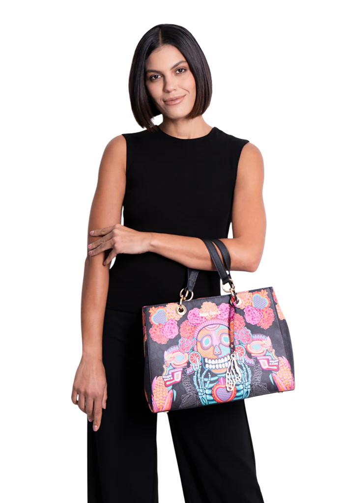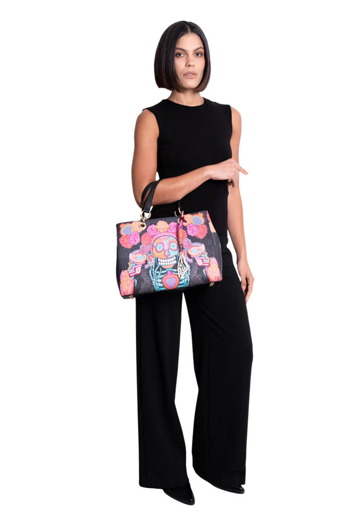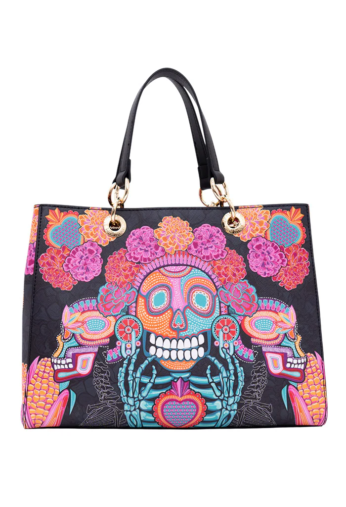 Dise帽o inspirado en la tradici贸n mexicana del D铆a de Muertos, sincretismo entre las celebraciones cat贸licas y las costumbres del M茅xico prehisp谩nico, se celebra el 1 y 2 de noviembre honrando a los muertos con ofrendas llenas de color, recordando lo que les gustaba en vida, acompa帽ado de flores de cempas煤chitl, calaveras de az煤car, pan de muerto, papel picado, velas e incienso que nos permiten compartir con ellos, dialogando con su recuerdo y las experiencias compartidas.