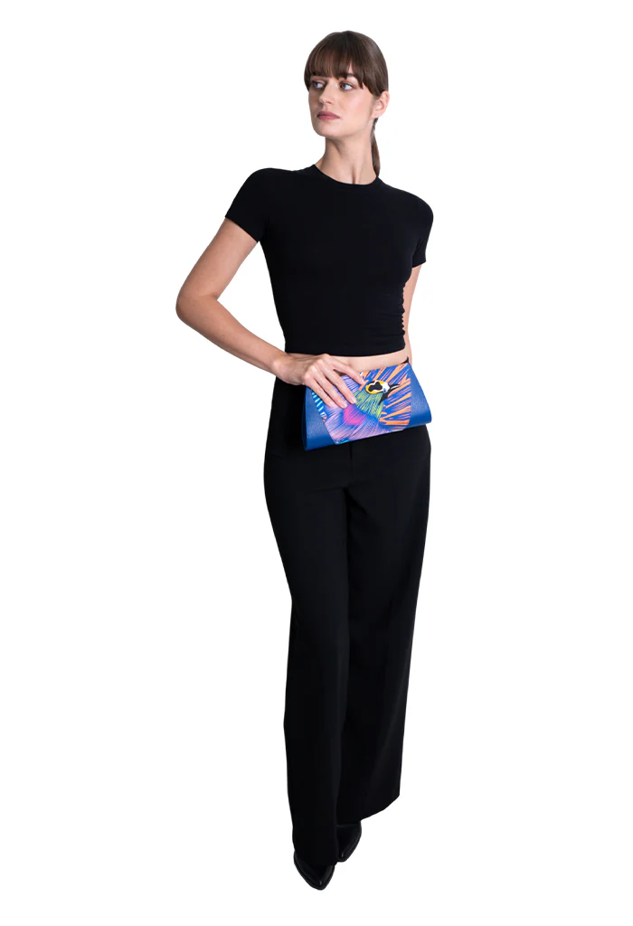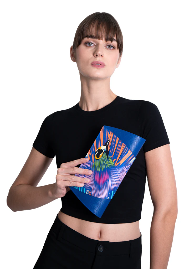 Bolsa tipo clutch. Su forma curva permite asirla con facilidad.