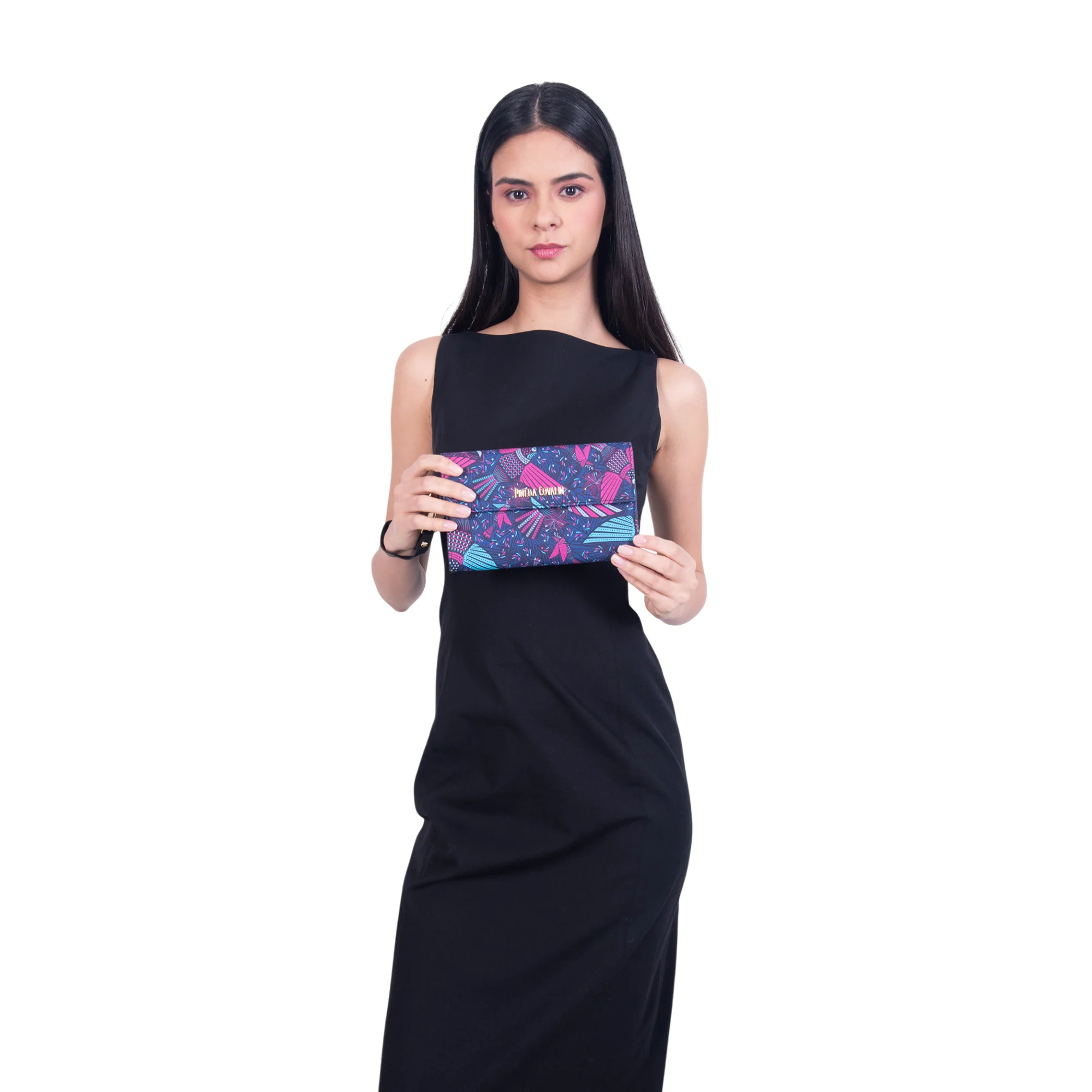 Tsool, del maya ‘ordenar, clasificar’. Bolsa multifuncional estilo wristlet con asa removible para convertirla en cartera. Incluye compartimentos para almacenar tarjetas y cierre interior.