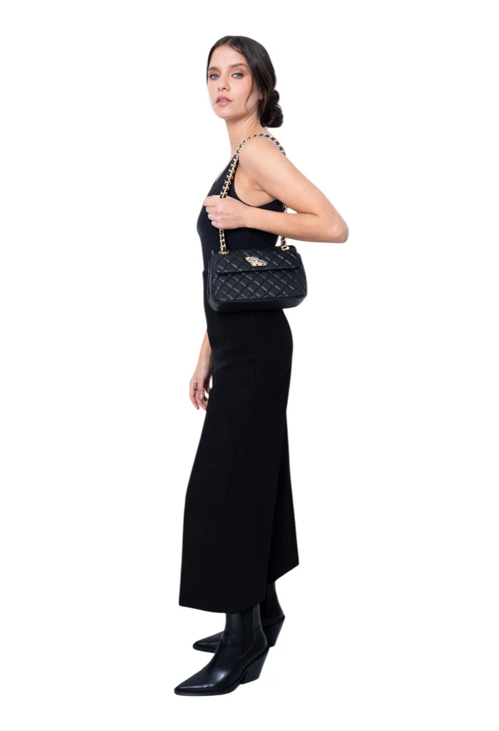 Bolsa estilo crossbody en acabado saffiano y detalles en relieve, capitonada con asa ajustable. Cuenta con compartimentos y cierre en el interior.