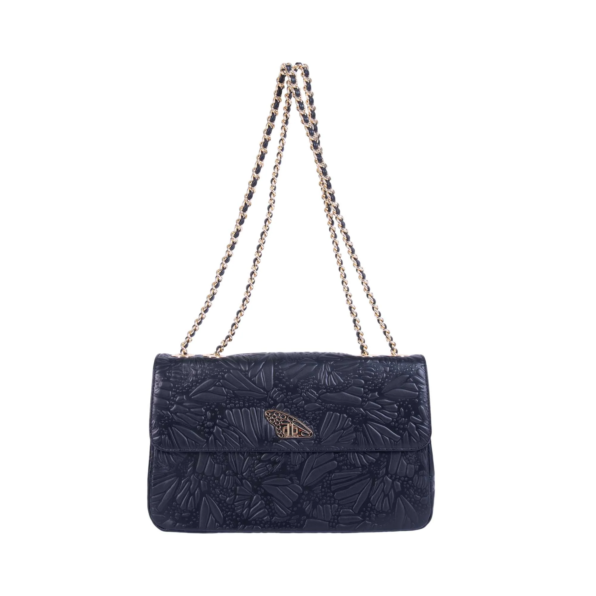 Bolsa estilo crossbody en acabado saffiano y detalles en relieve, con asa ajustable . Cuenta con compartimentos y cierre en el interior.
