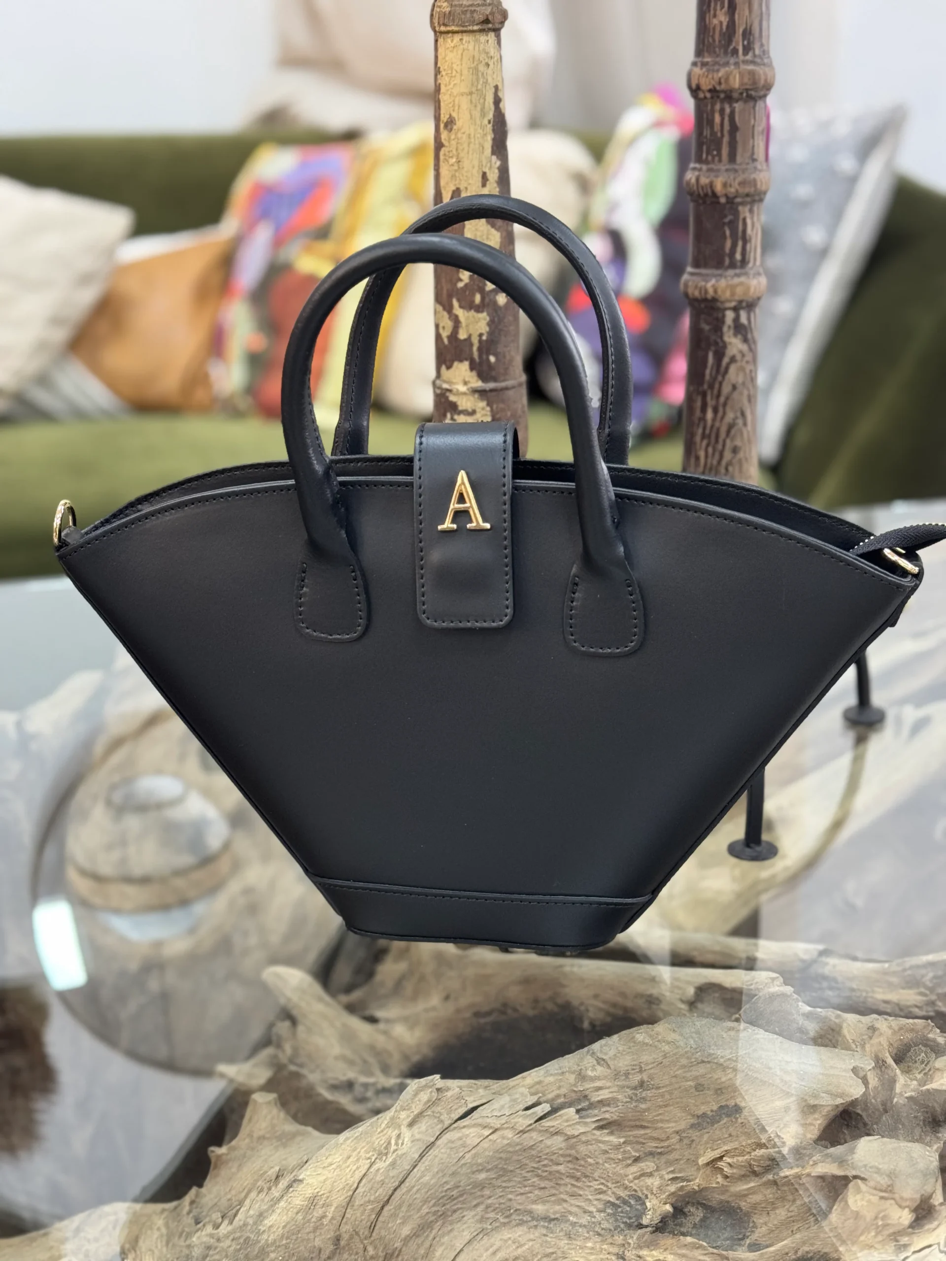 Bolso 100% piel natural. Lleva cremallera en su cierre m谩s tapa con cierre herm茅tico y asa de piel extensible en su interior para colgar bandolera. Puede personalizarlo eligiendo su inicial .