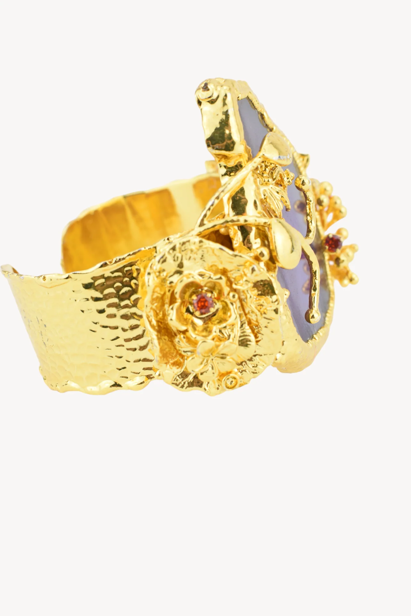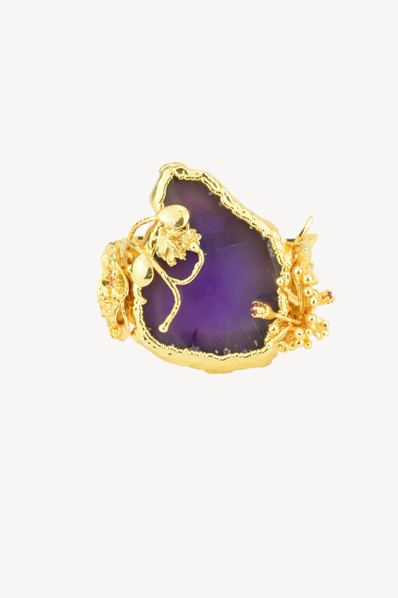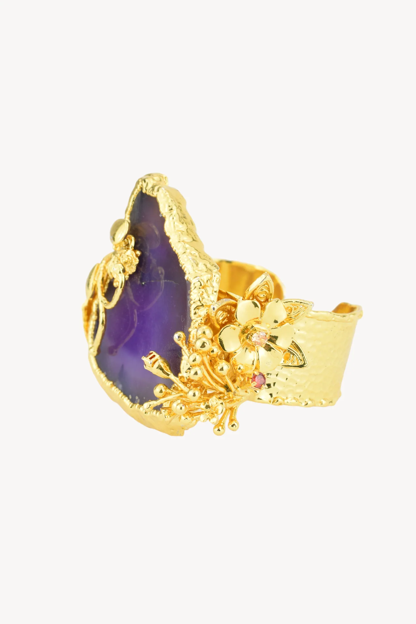 Sutil y elegante, este brazalete de cuarzo morado en tono dorado es una adición impresionante a cualquier atuendo. Con su encanto exclusivo y su toque de color audaz, este brazalete es perfecto para complementar tu estilo y mostrar tu buen gusto.