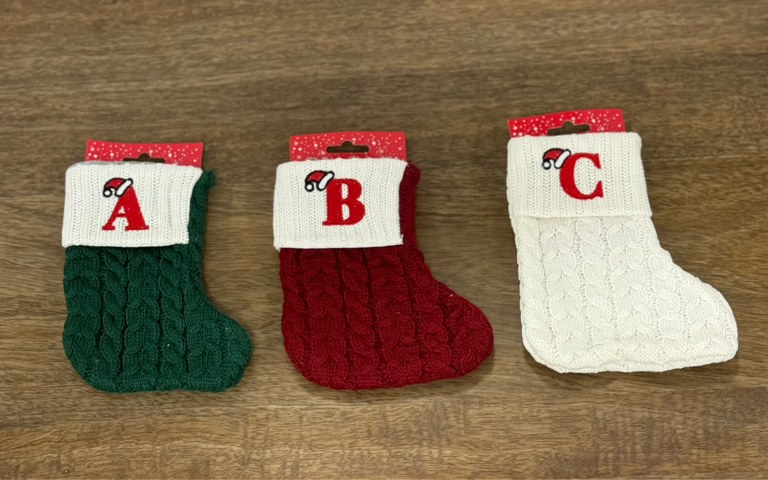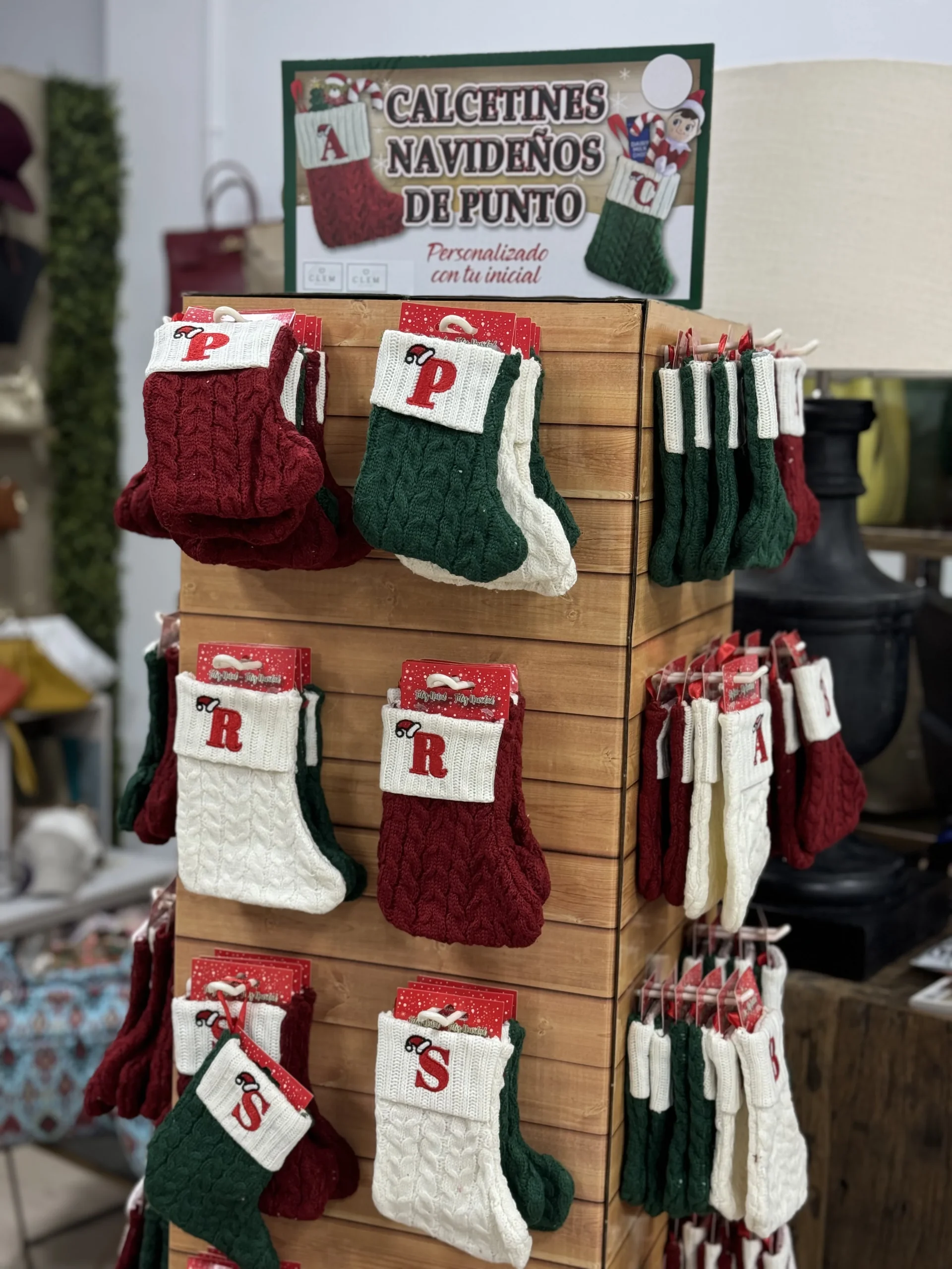 Calcetín de Punto de Lana personalizados, con inicial bordada. Lleva una cinta para colgar de Árbol de Navidad, Puertas, Chimeneas, etc…