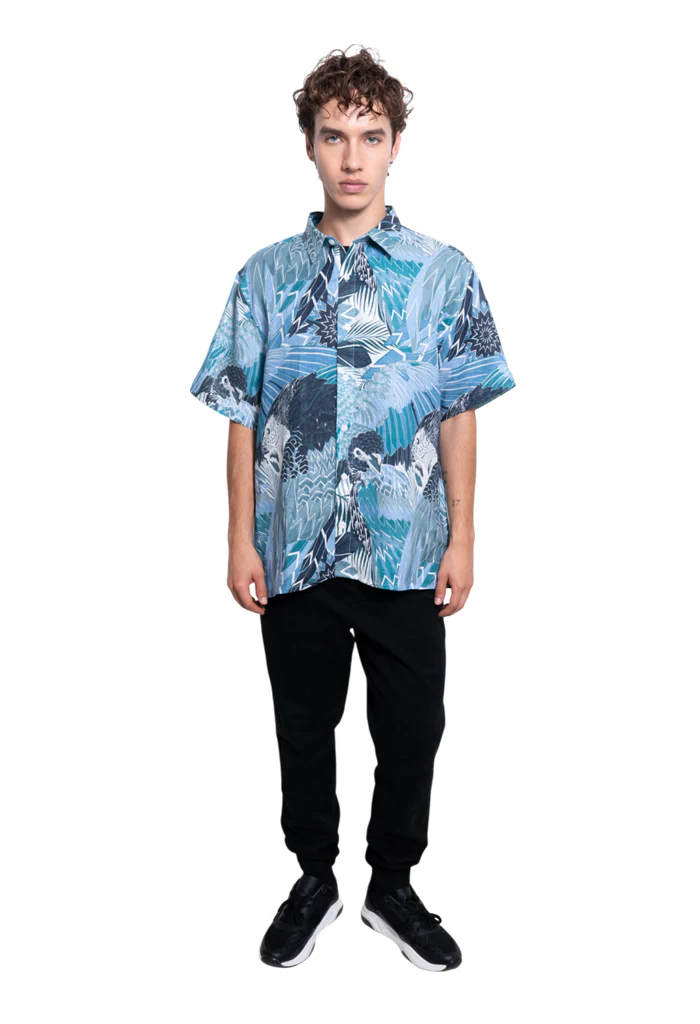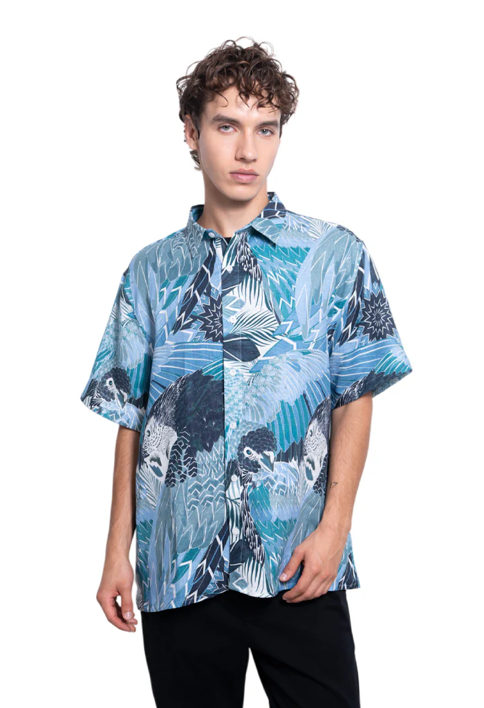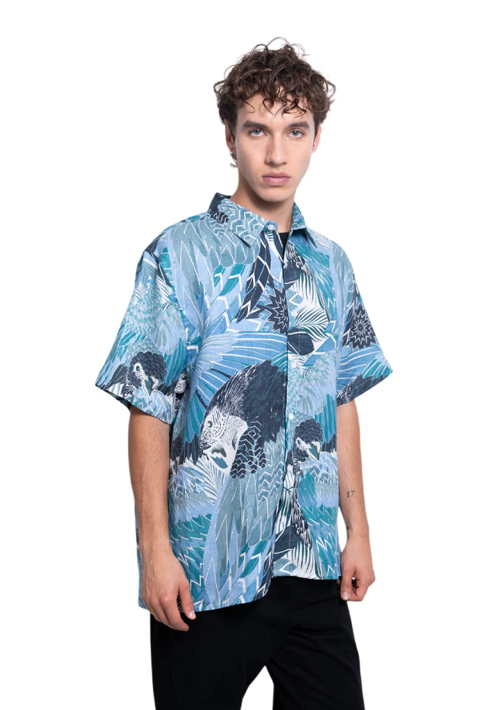 Camisa en Lino, Cuello solapa y manga corta.cierre frontal
