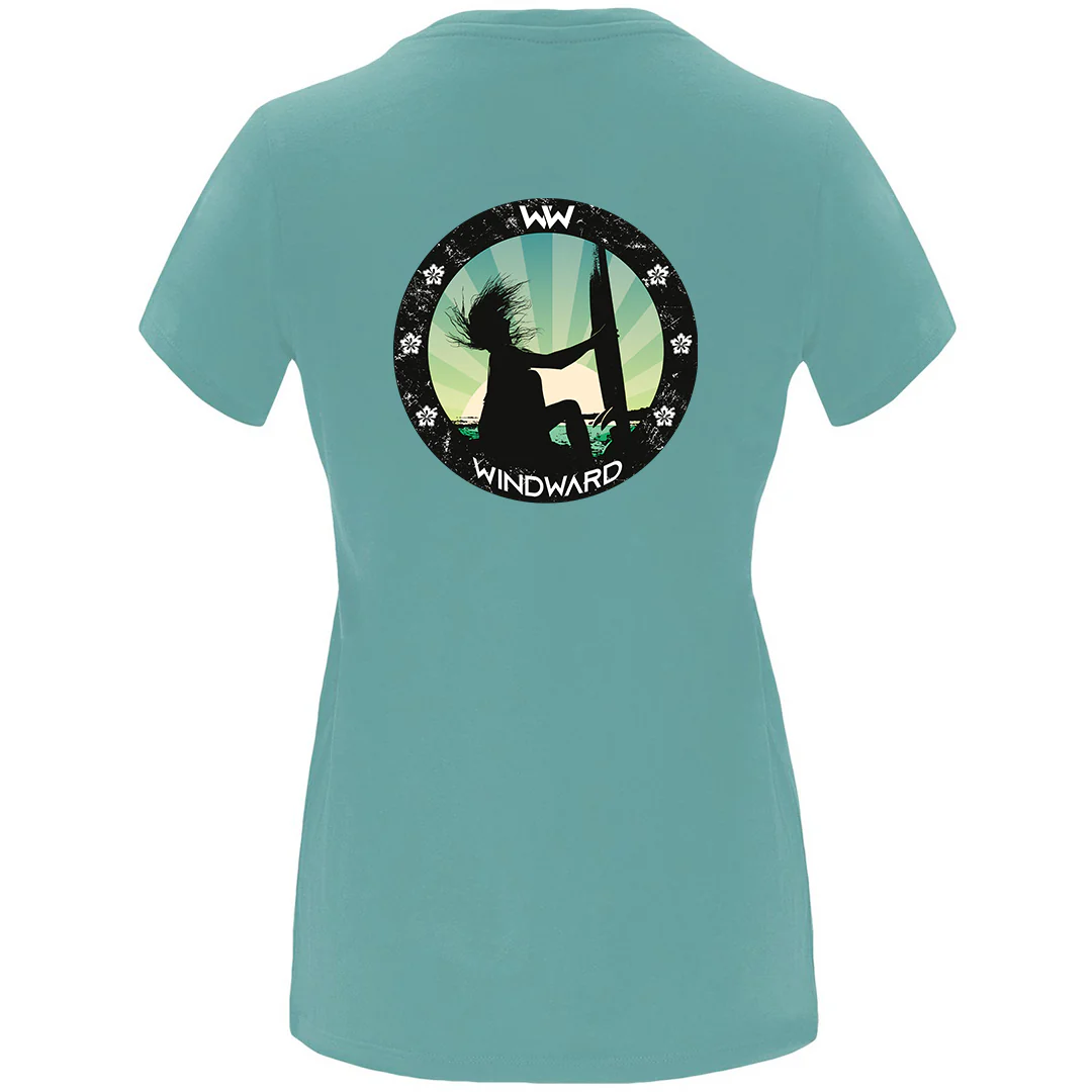 Camiseta mujer entallada manga corta SOULSET SURFWOMAN Azul Dusty, 100% algod贸n. Cuello redondo en canal茅 1脳1. Corte entallado. Cubrecosturas reforzado en cuello.