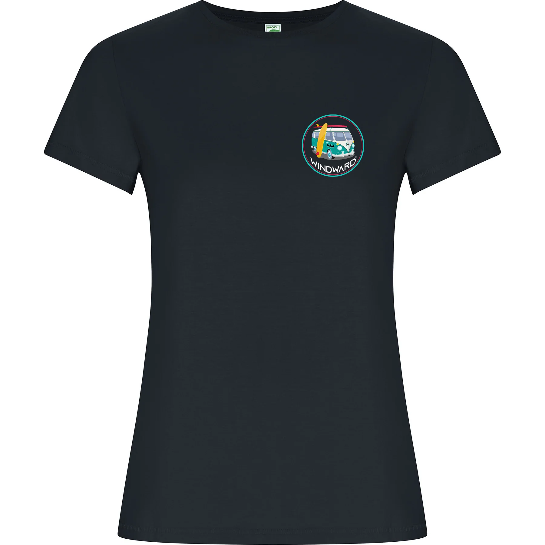 Camiseta Orgánica entallada mujer VAN Ébano, 100% Algodón Orgánico Peinado, punto liso, escota redondo con Rib 1×1, costuras decorativas en bajo y mangas, costuras laterales, con Certificados de responsabilidad ECO.