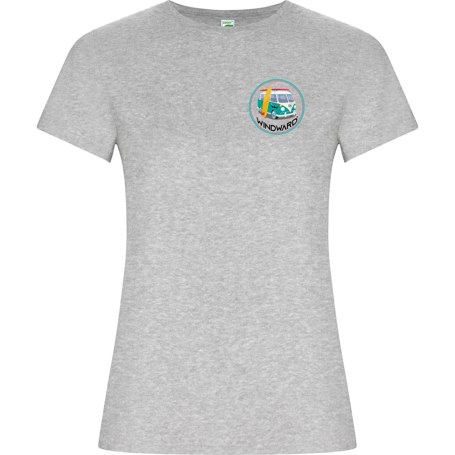 Camiseta Orgánica entallada mujer VAN Gris, 100% Algodón Orgánico Peinado, punto liso, escota redondo con Rib 1×1, costuras decorativas en bajo y mangas, costuras laterales, con Certificados de responsabilidad ECO.