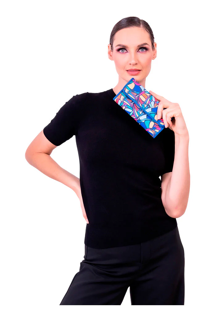 Cartera con compartimentos para billetes y tarjetas. Cuenta con cierre para almacenar monedas.