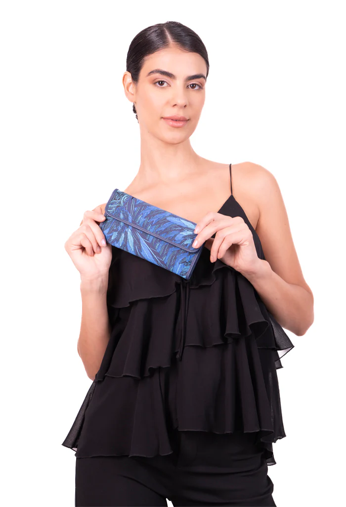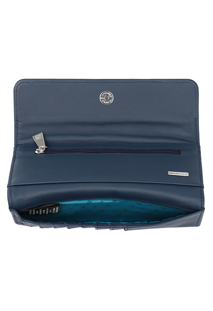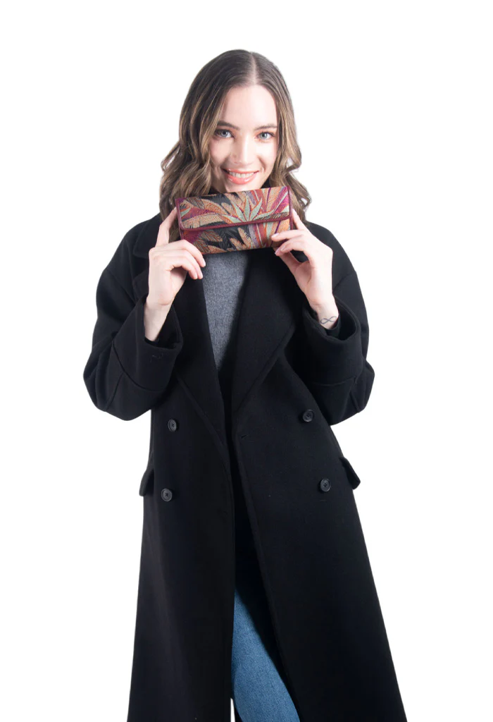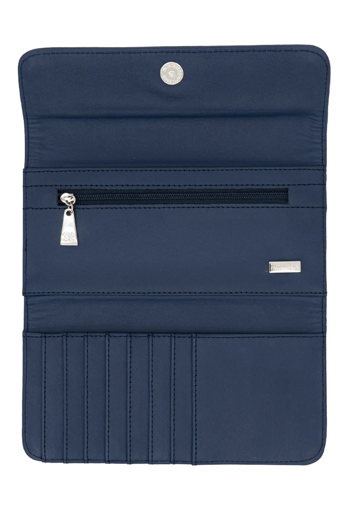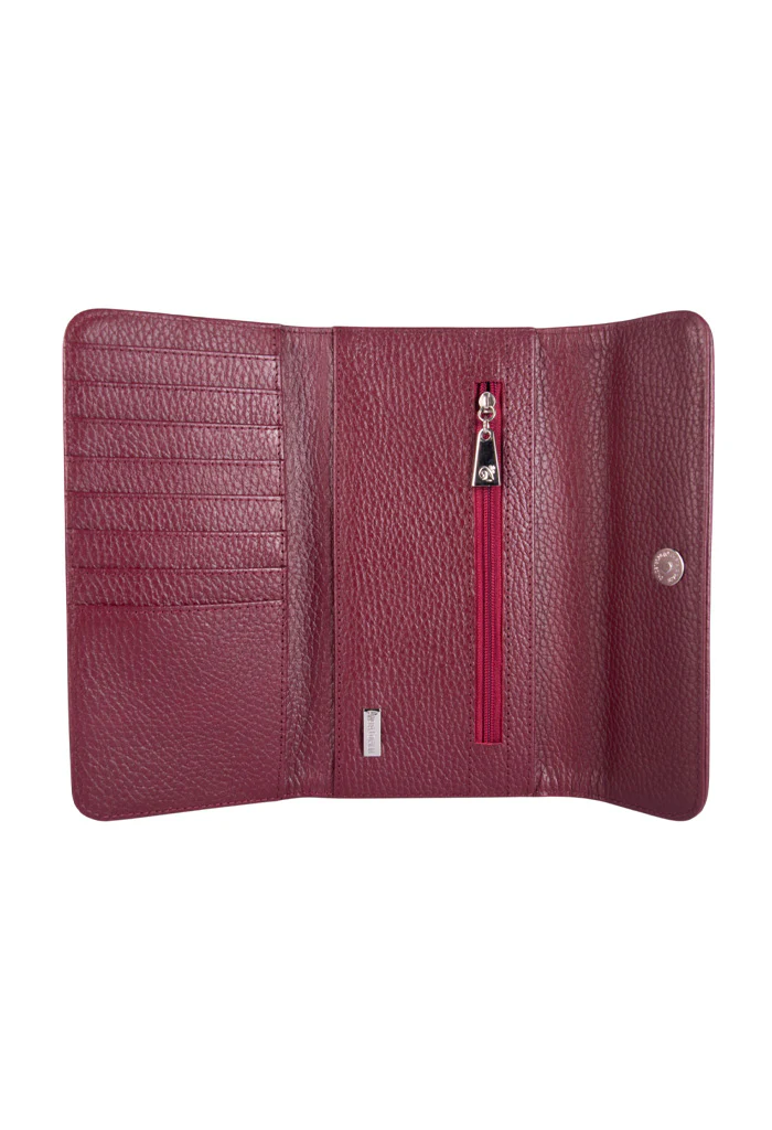 Cartera con compartimentos para billetes y tarjetas. Cuenta con cierre para almacenar monedas.