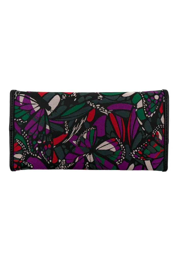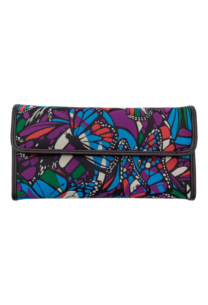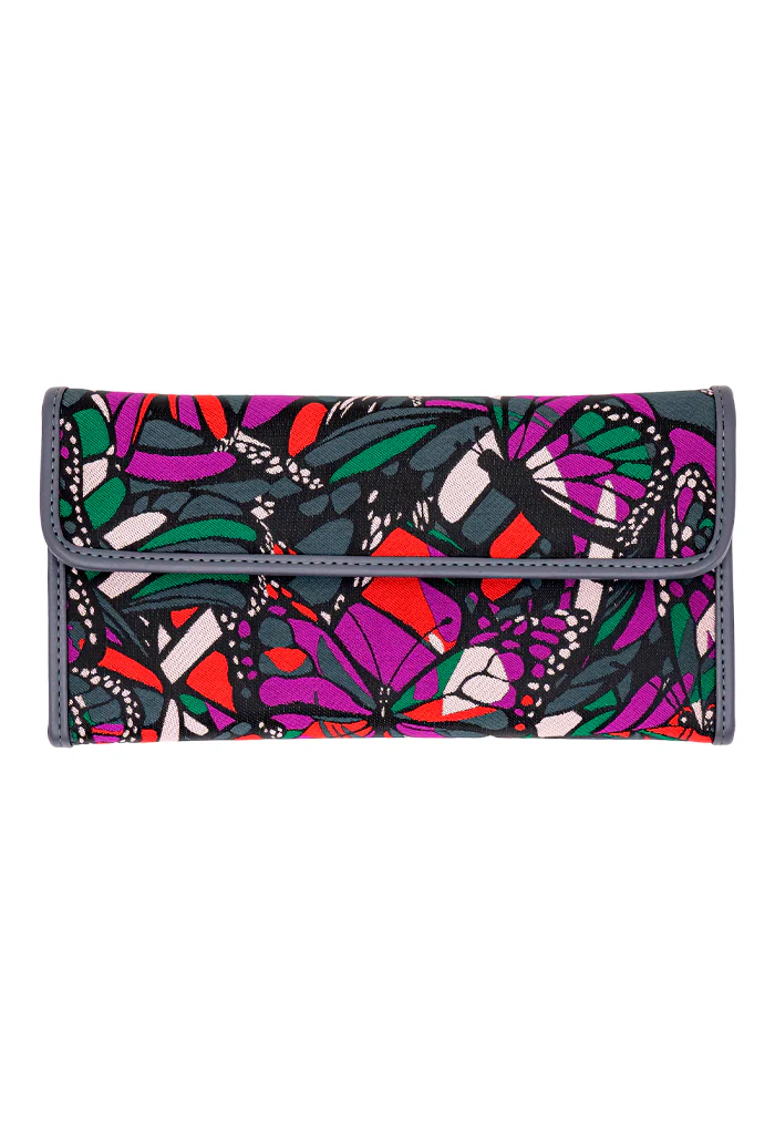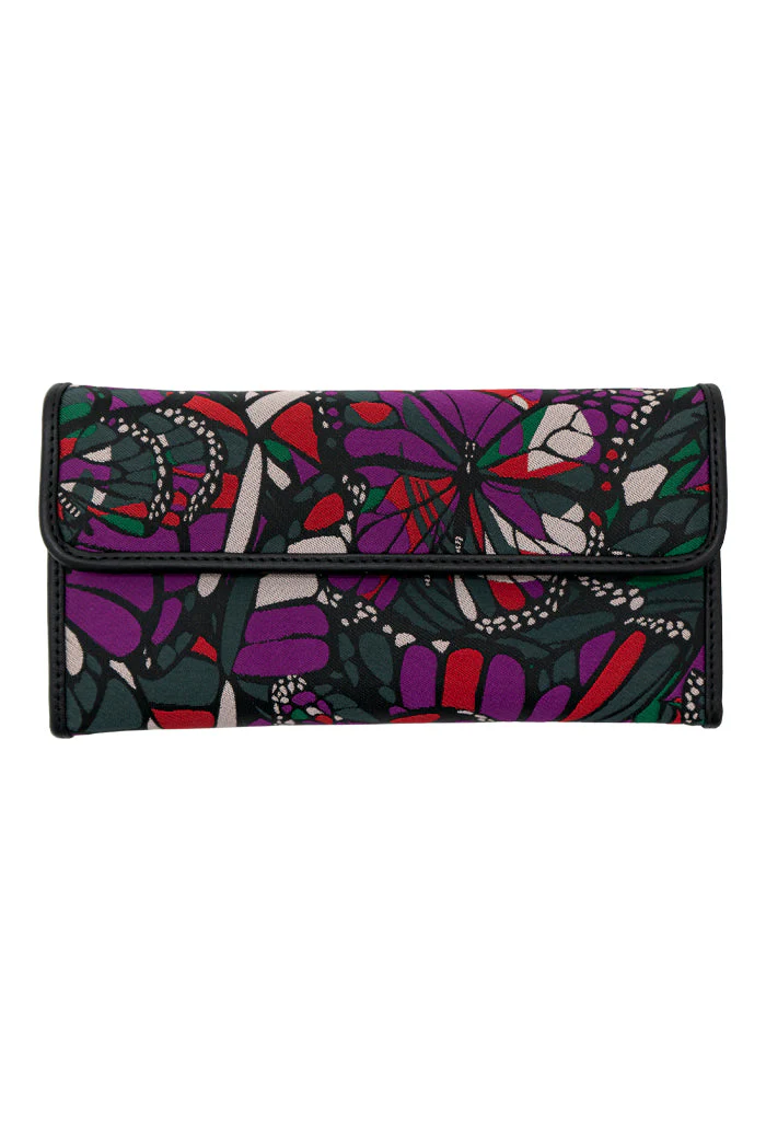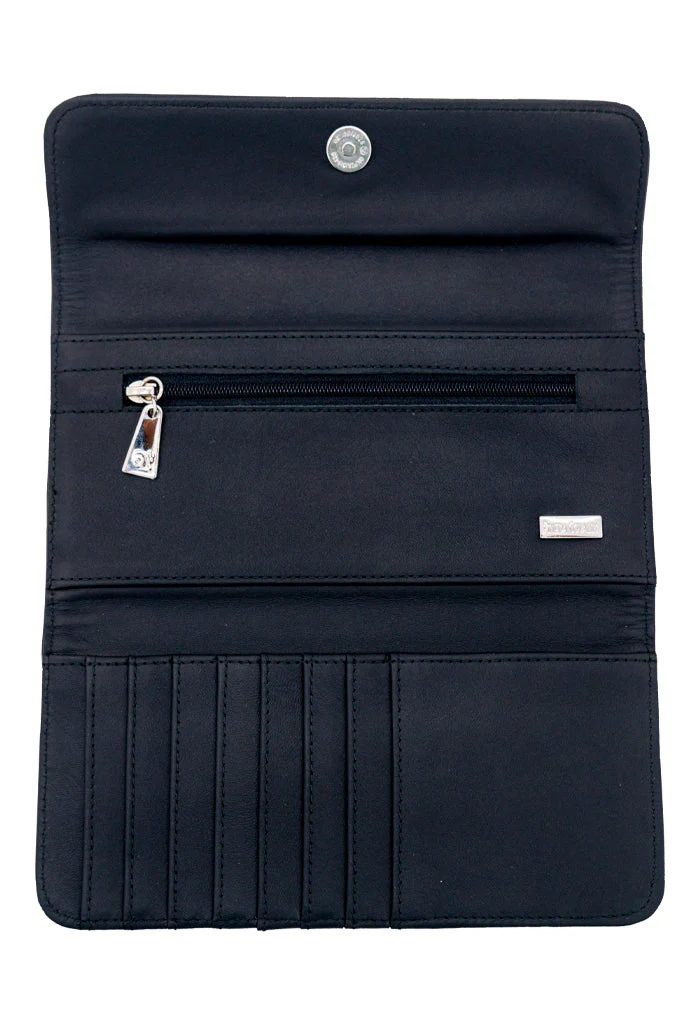 Cartera con compartimentos para billetes y tarjetas. Cuenta con cierre para almacenar monedas.