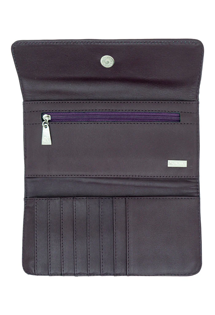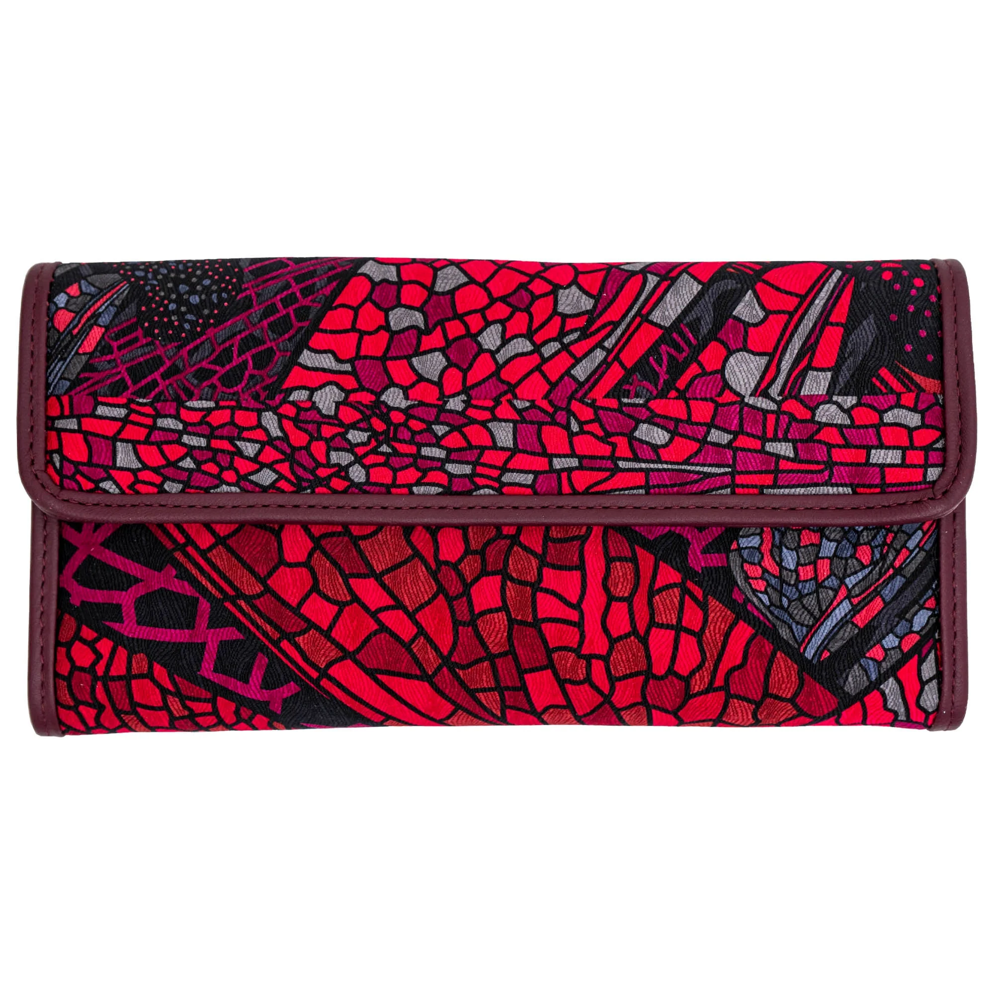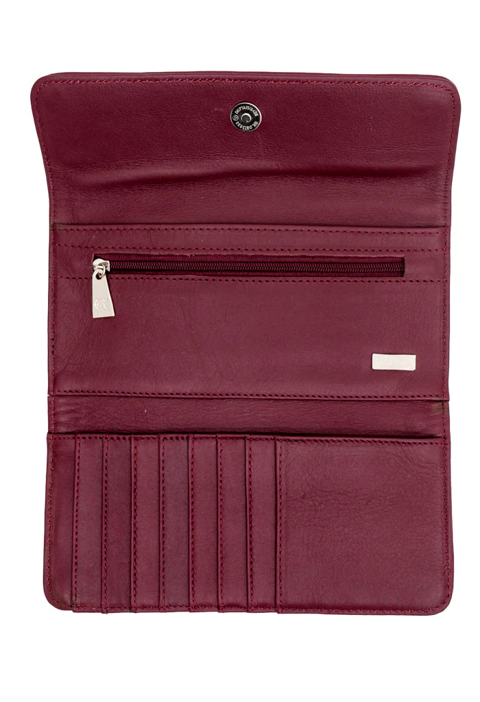 Cartera con compartimentos para billetes y tarjetas. Cuenta con cierre para almacenar monedas.