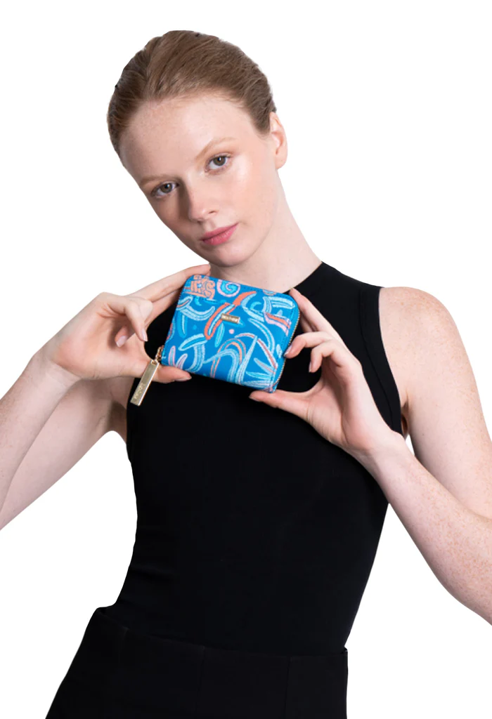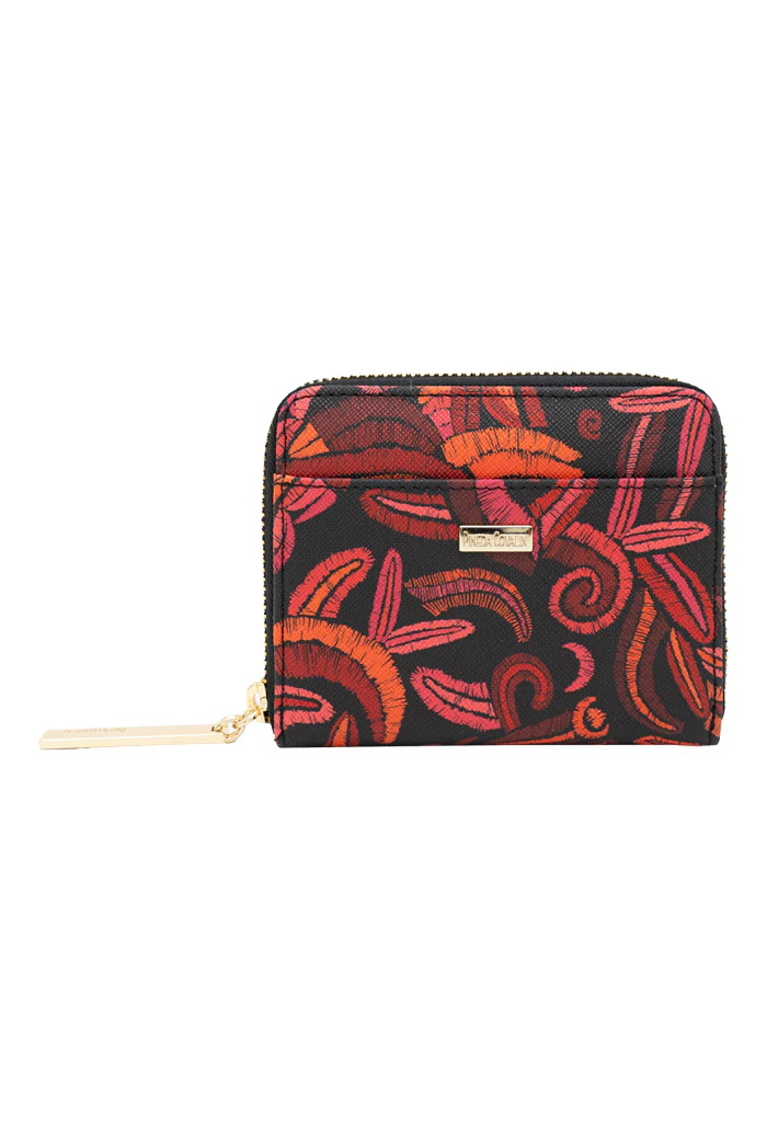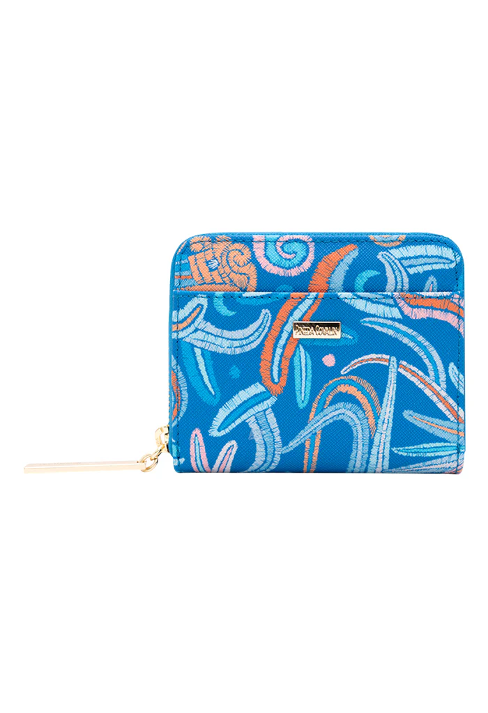 Cartera en acabado saffiano. Cuenta con cierre para almacenar monedas y compartimentos para tarjetas.