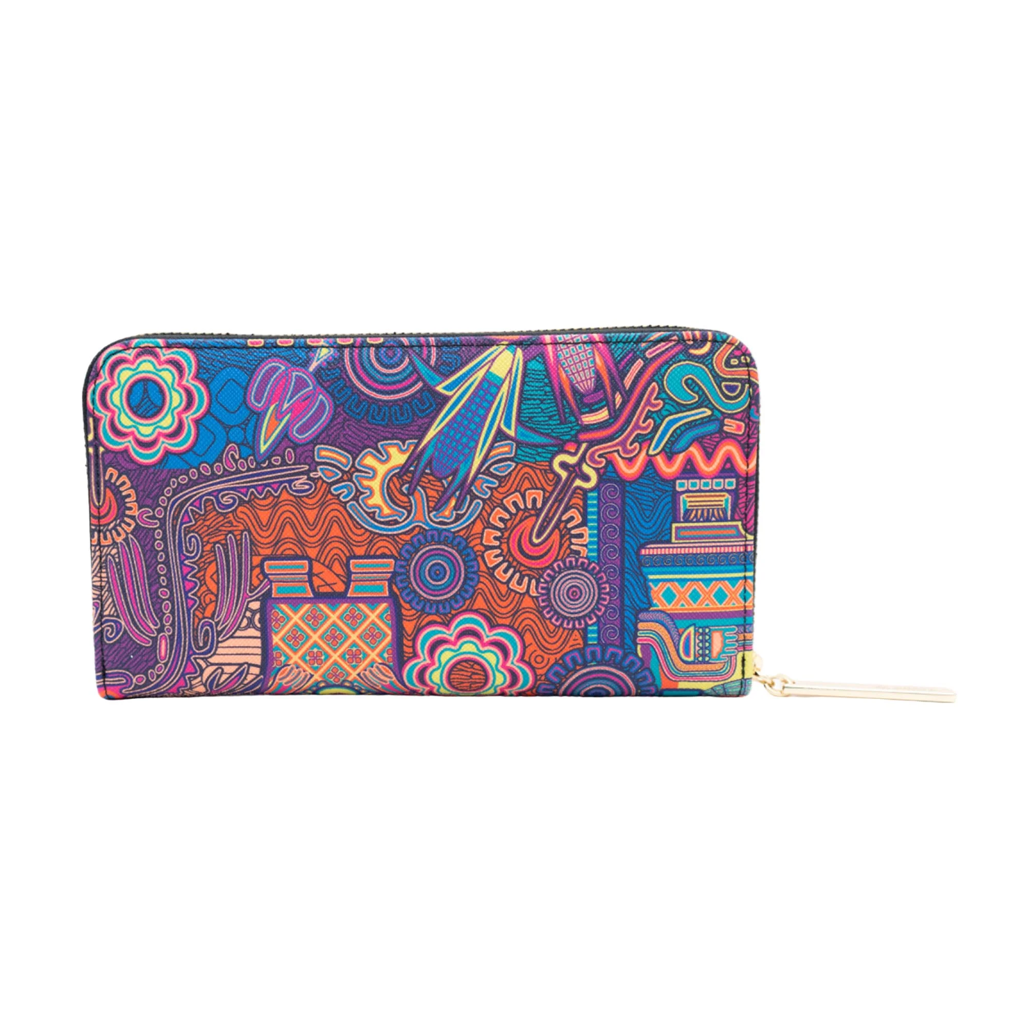 Cartera en acabado saffiano. Cuenta con cierre para almacenar monedas y compartimentos para tarjetas.