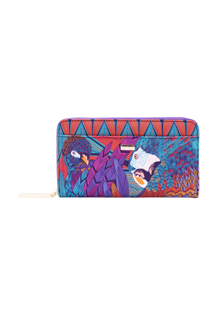 Cartera en acabado saffiano. Cuenta con cierre para almacenar monedas y compartimentos para tarjetas.