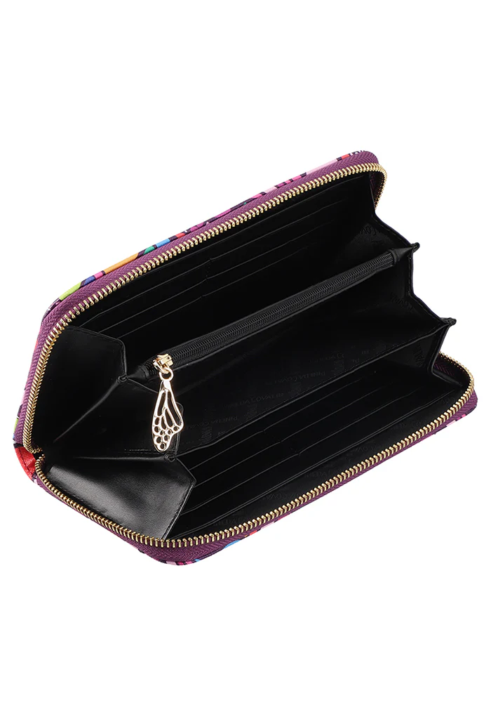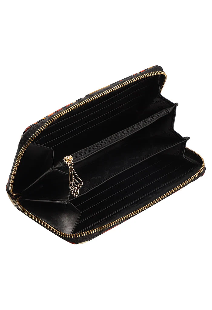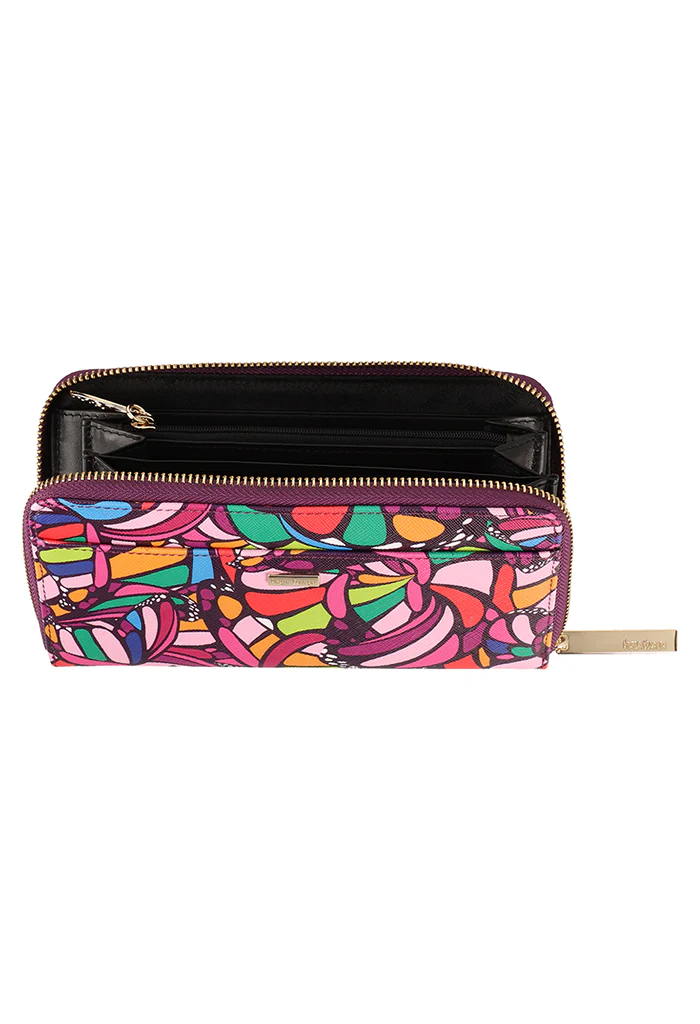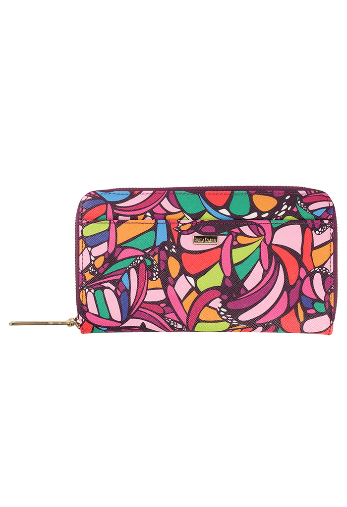 Cartera en acabado saffiano. Cuenta con cierre para almacenar monedas y compartimentos para tarjetas.
