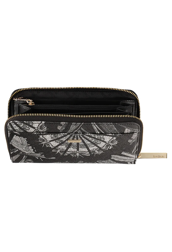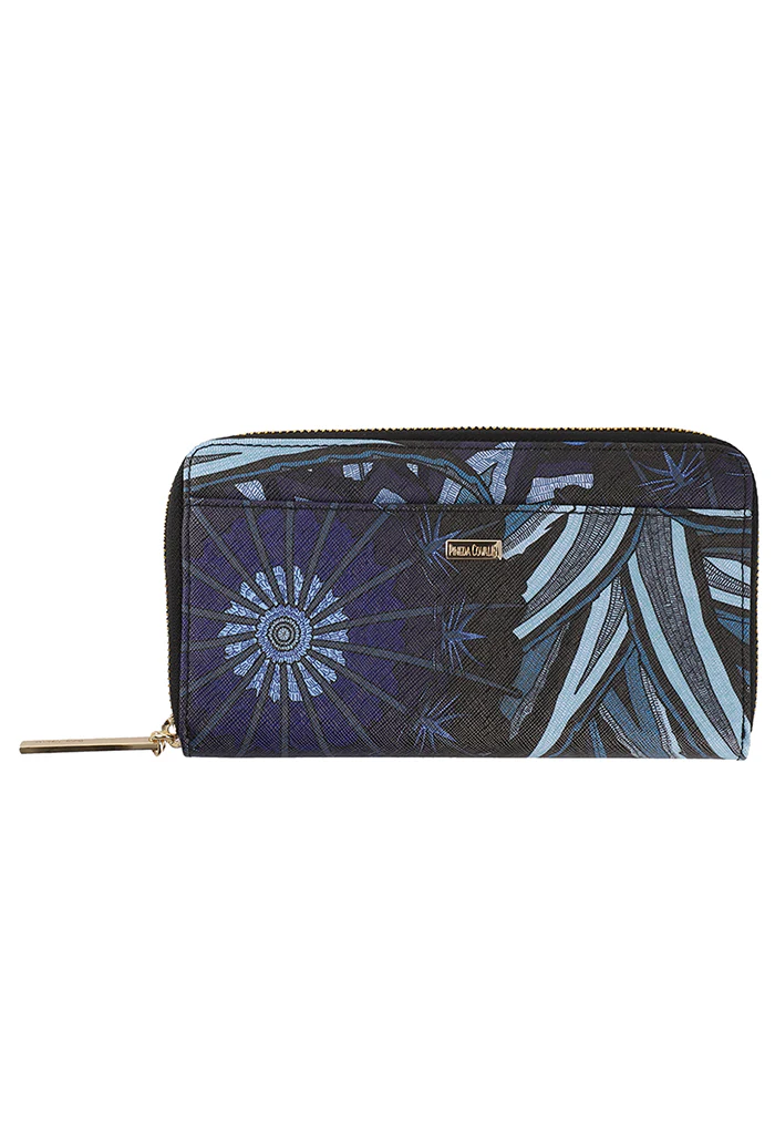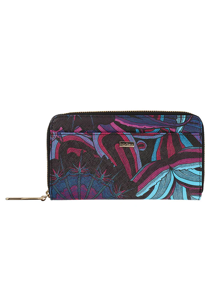 Cartera en acabado saffiano. Cuenta con cierre para almacenar monedas y compartimentos para tarjetas.