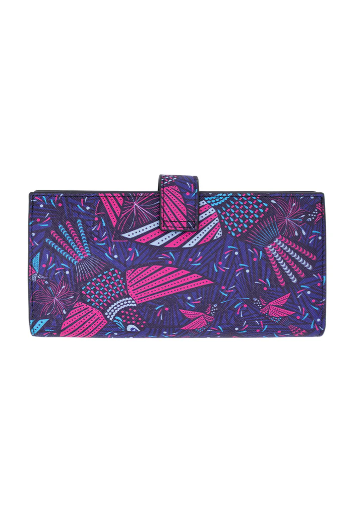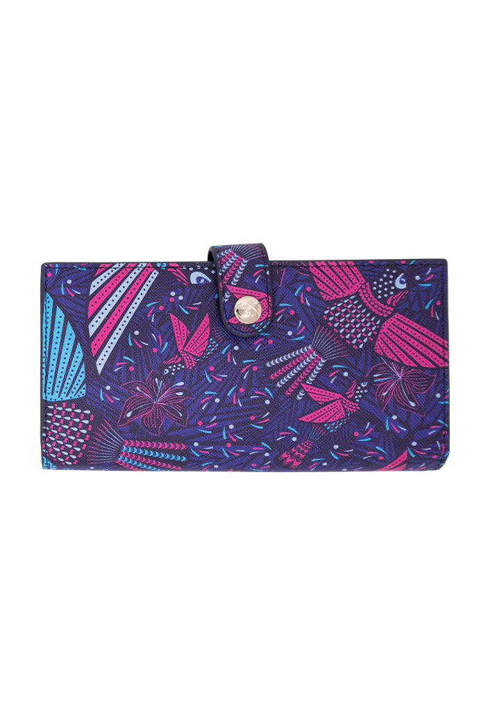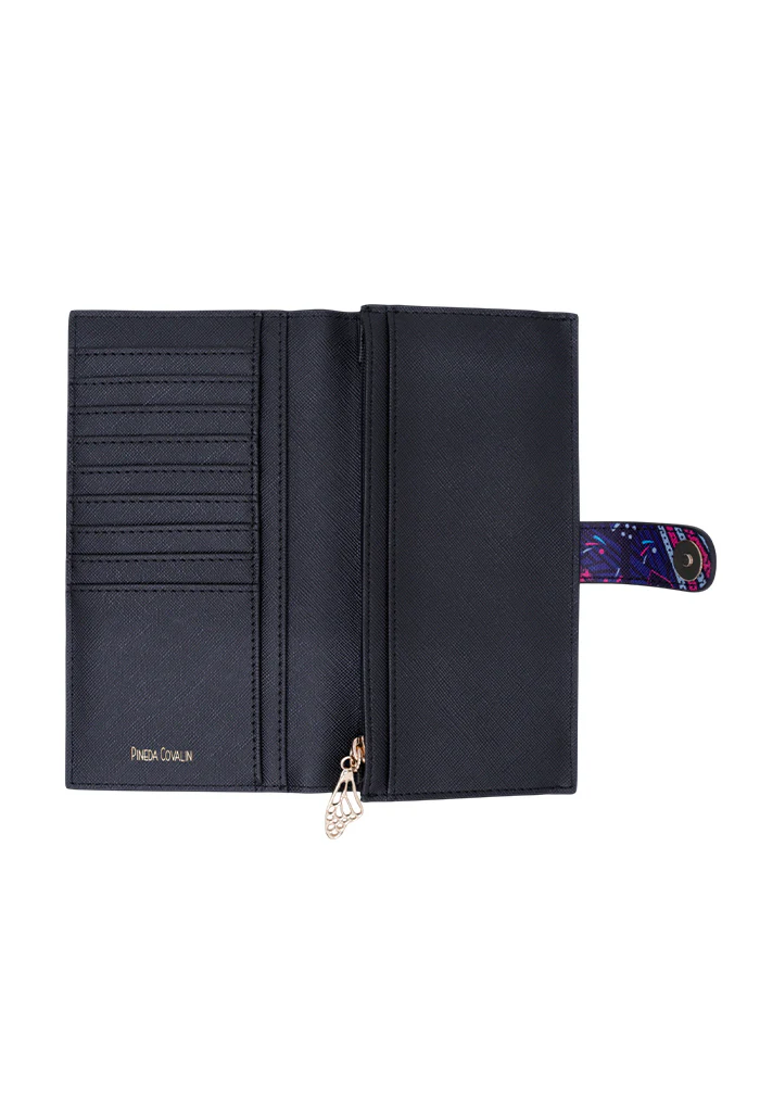 Cartera con grabado. Cuenta con cierre para almacenar monedas y compartimentos para tarjetas.