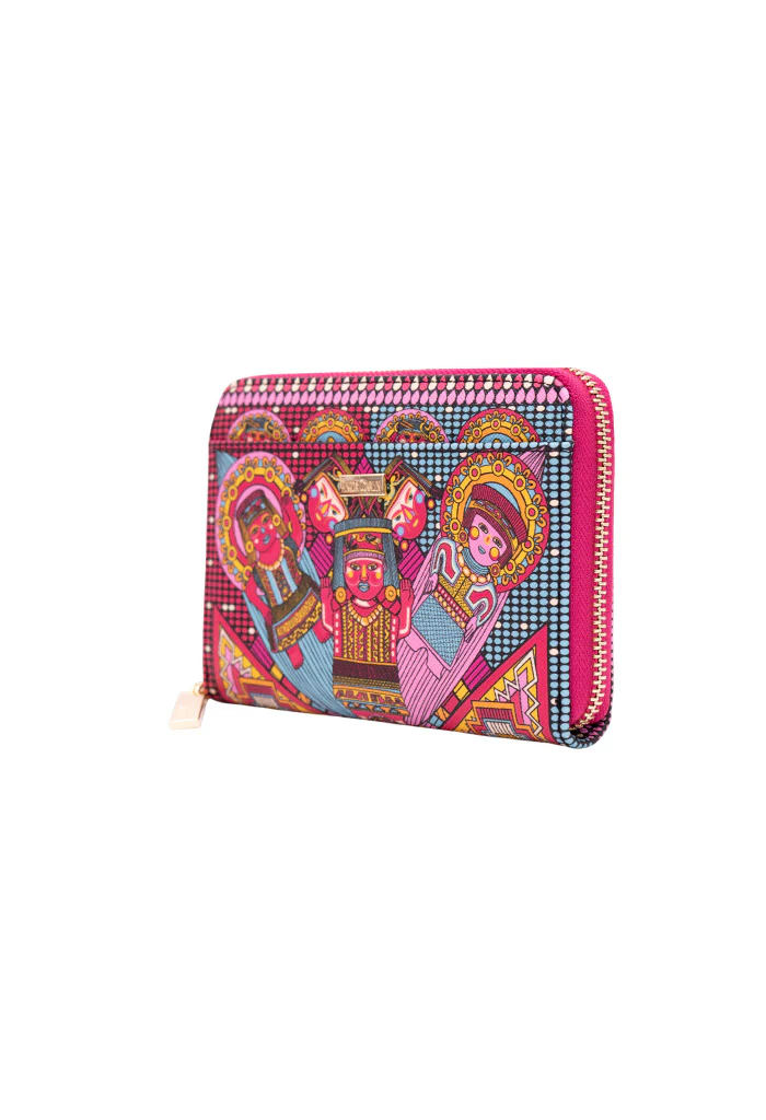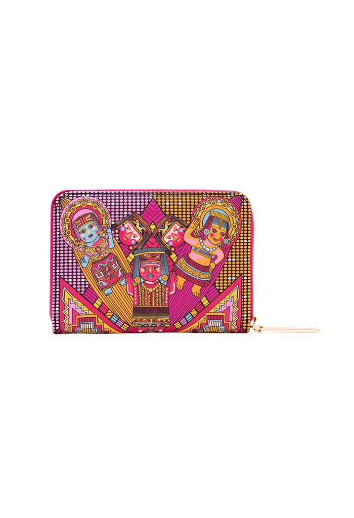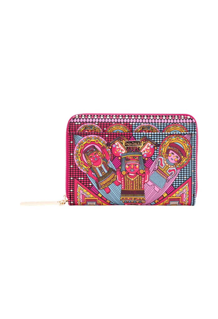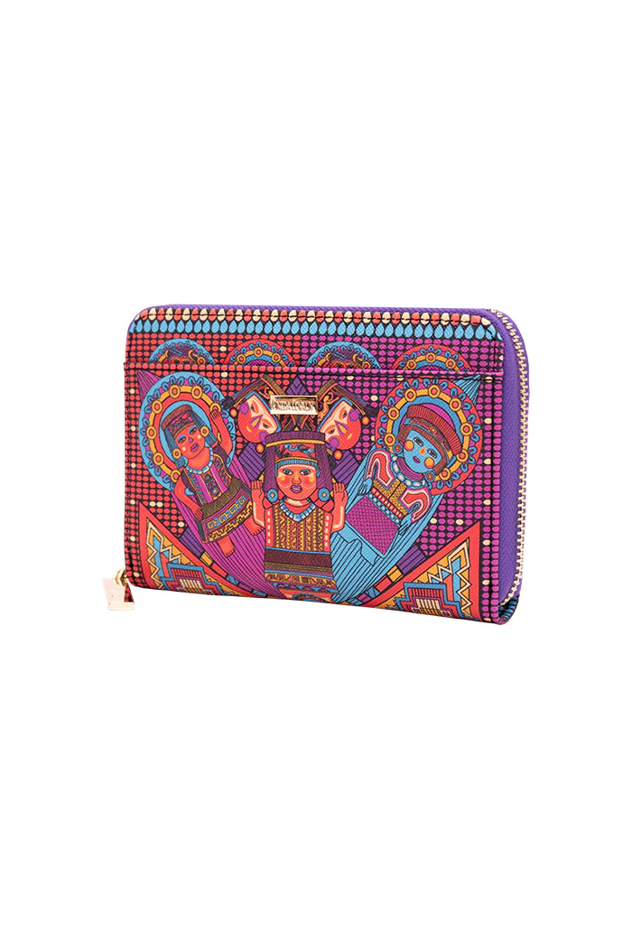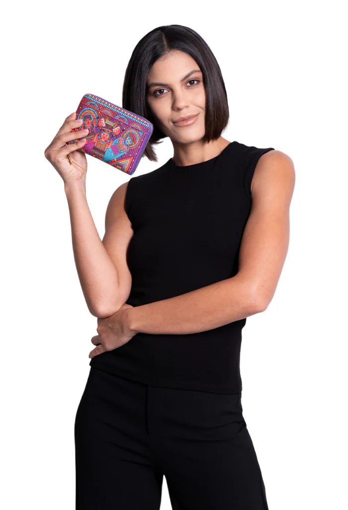Cartera con cierre para almacenar monedas y compartimentos para tarjetas.
