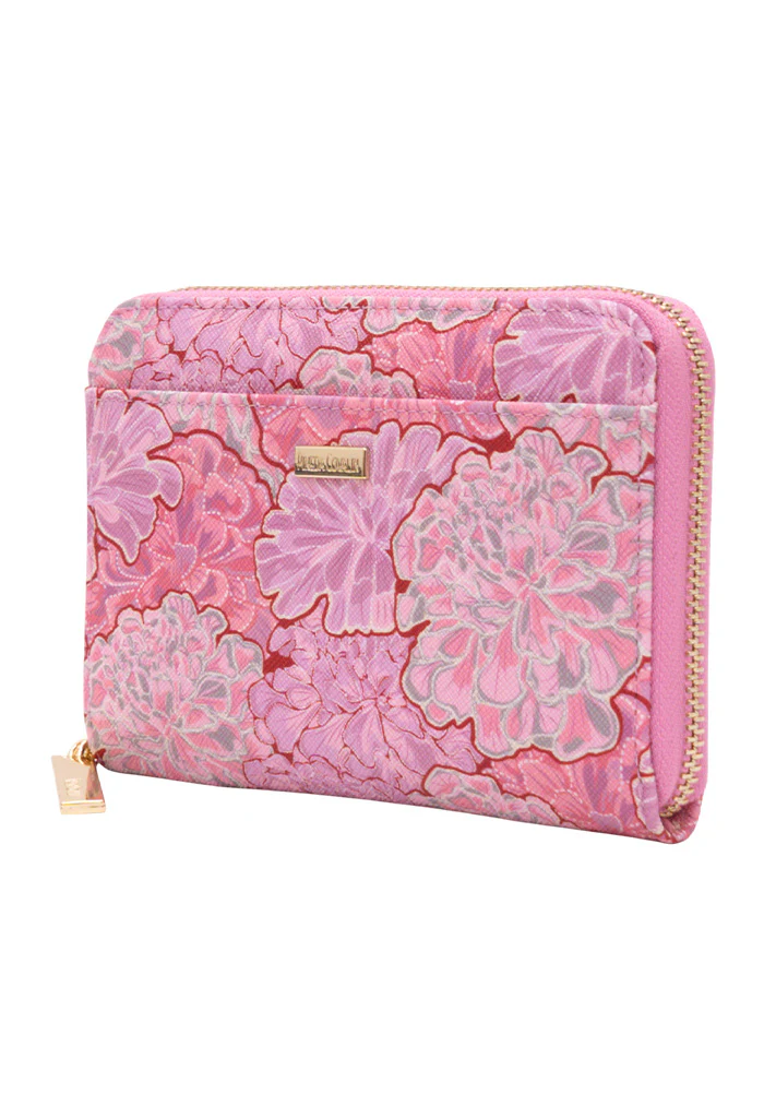 Cartera con cierre para almacenar monedas y compartimentos para tarjetas.