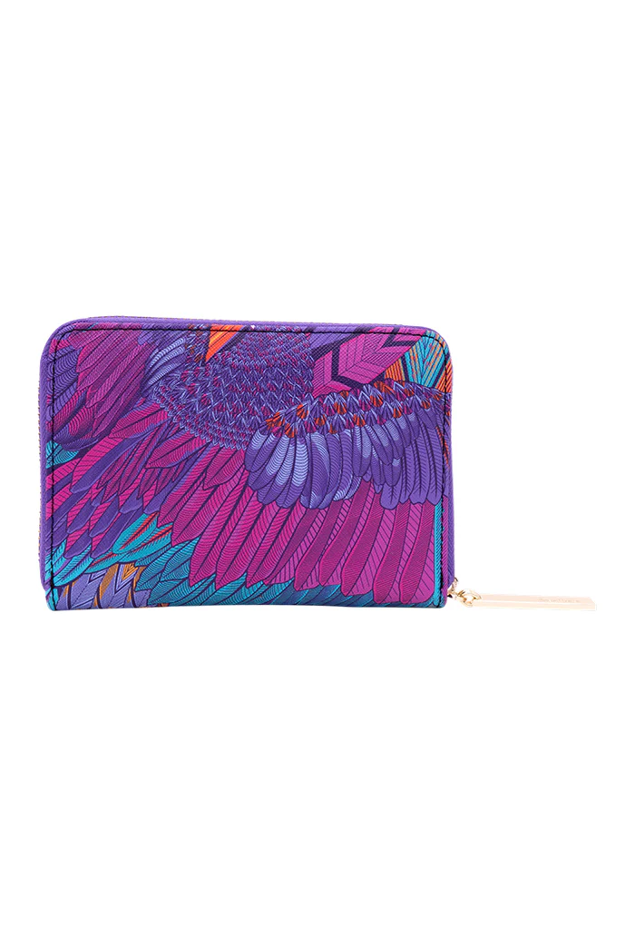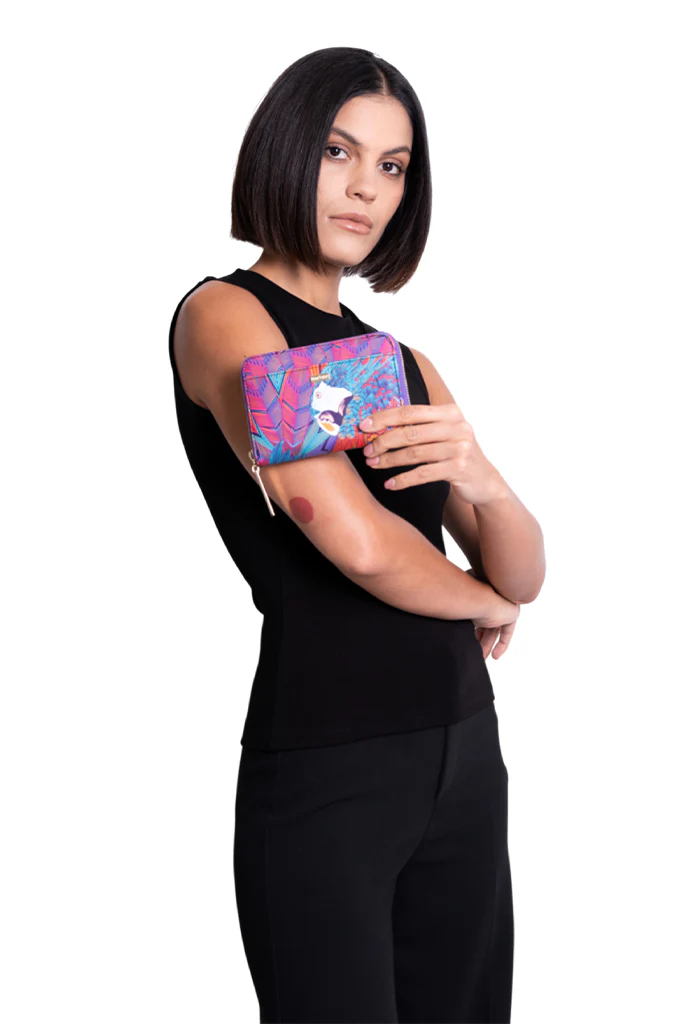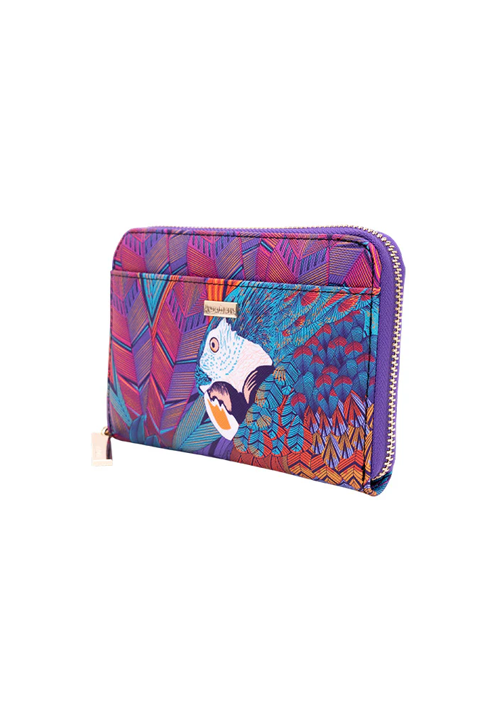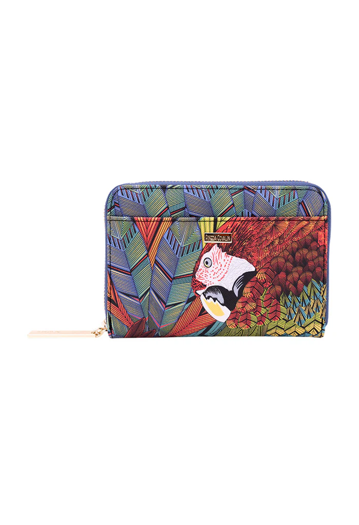 Cartera con cierre para almacenar monedas y compartimentos para tarjetas.