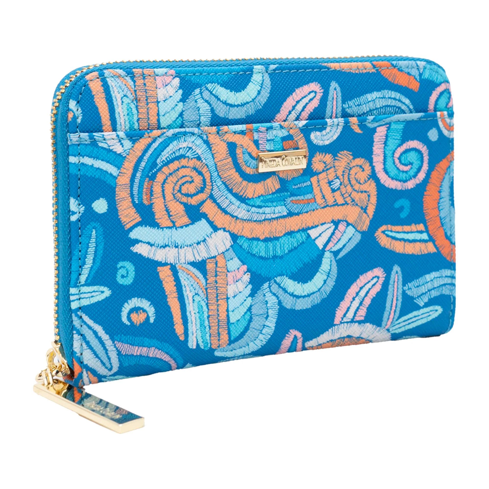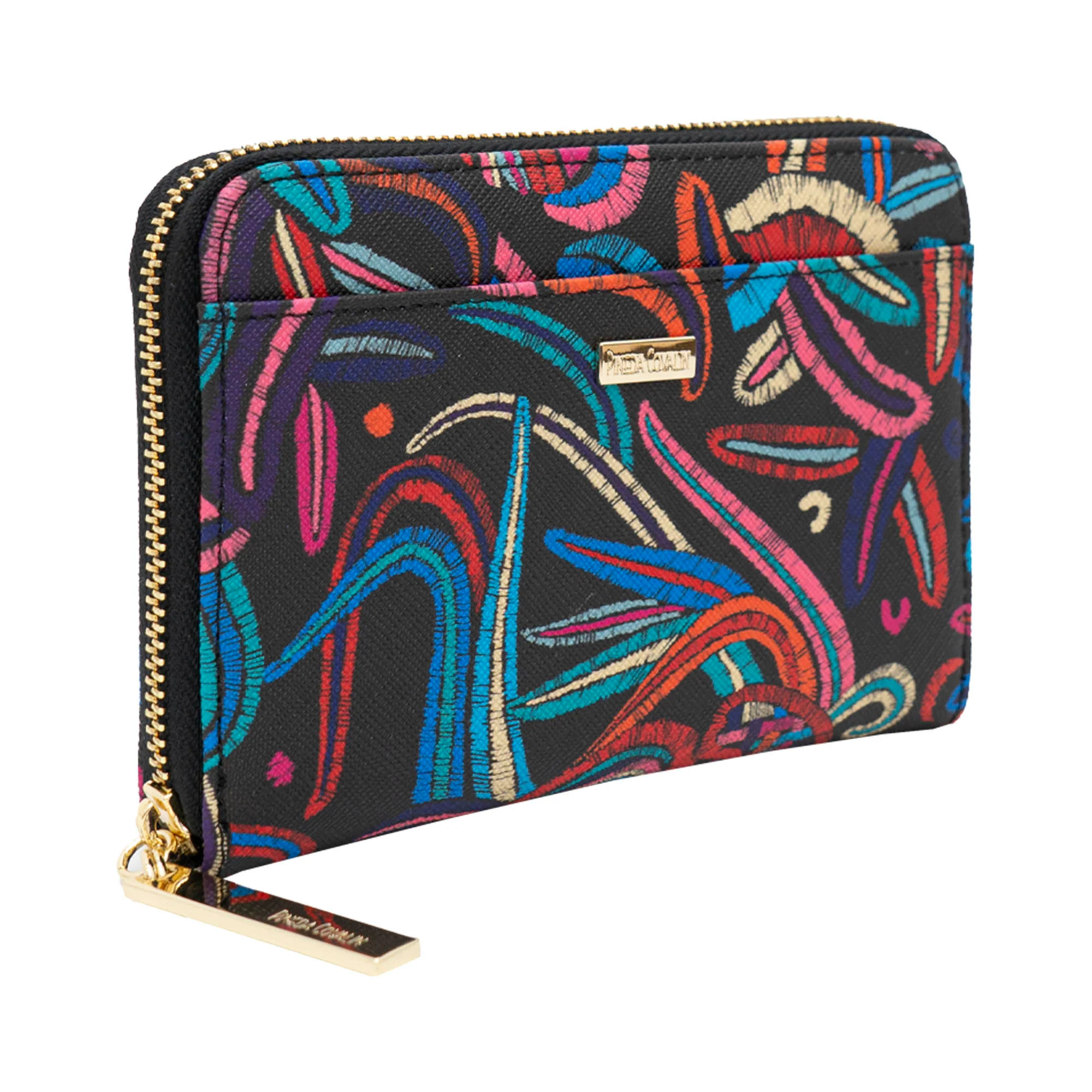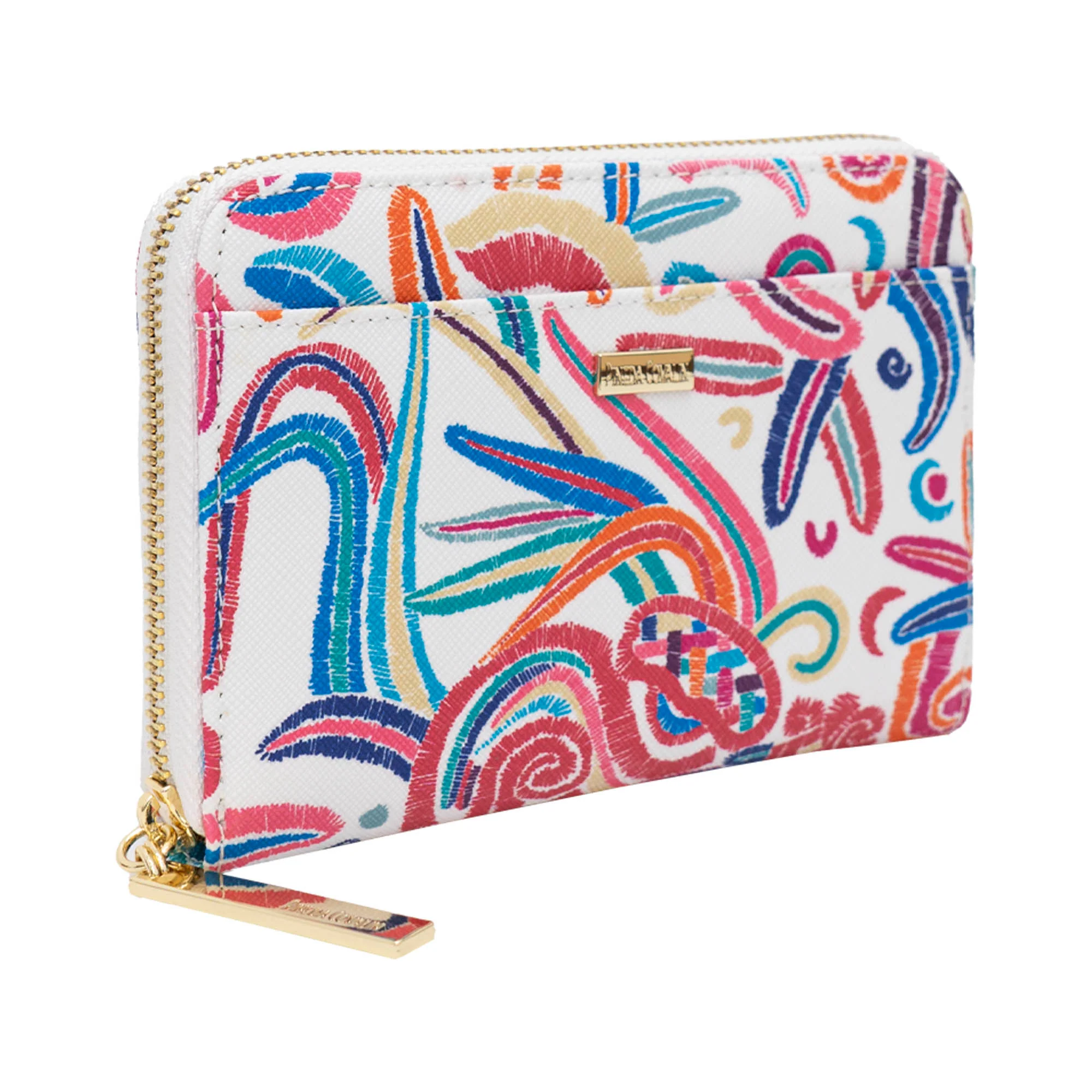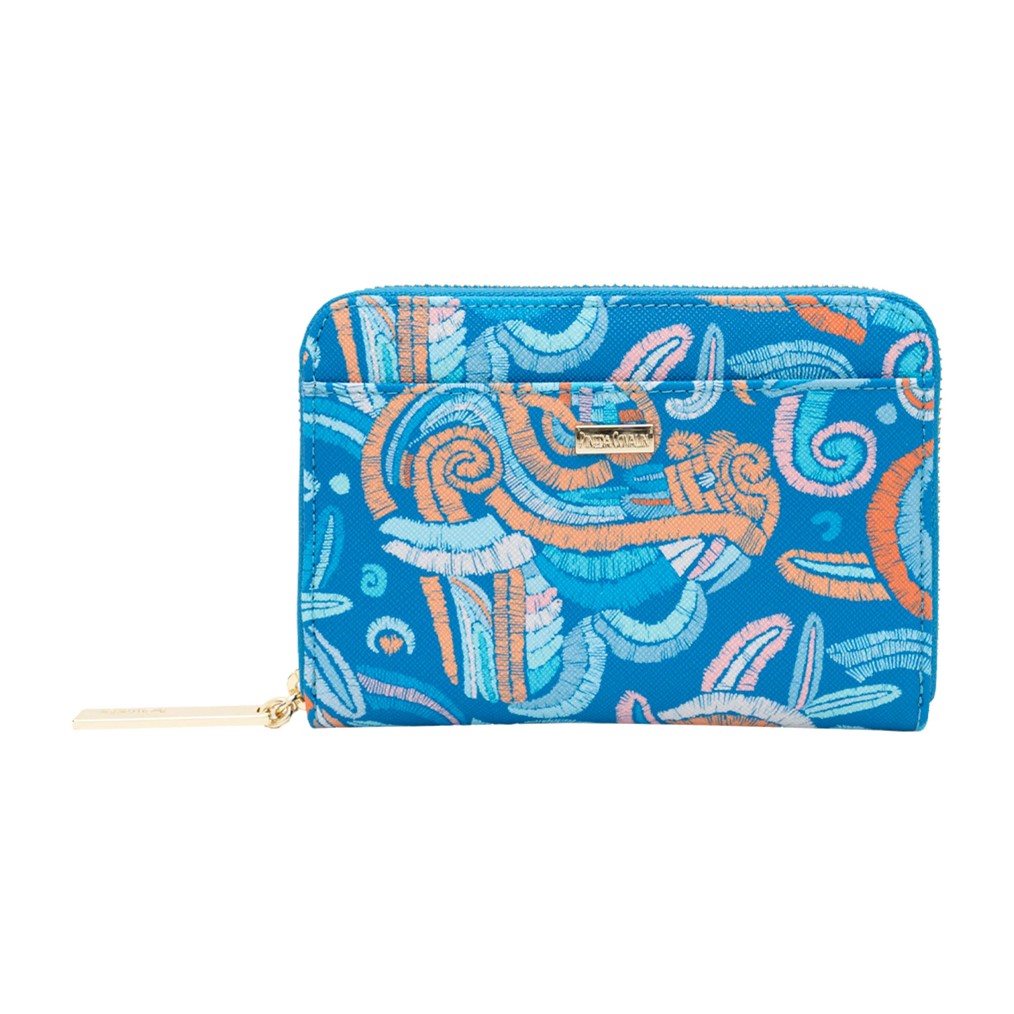Cartera en acabado saffiano. Cuenta con cierre para almacenar monedas y compartimentos para tarjetas.