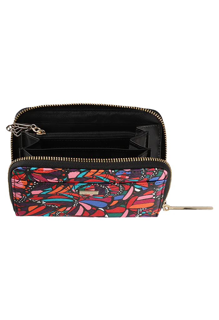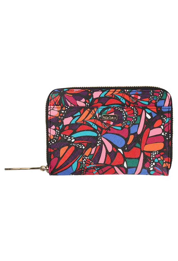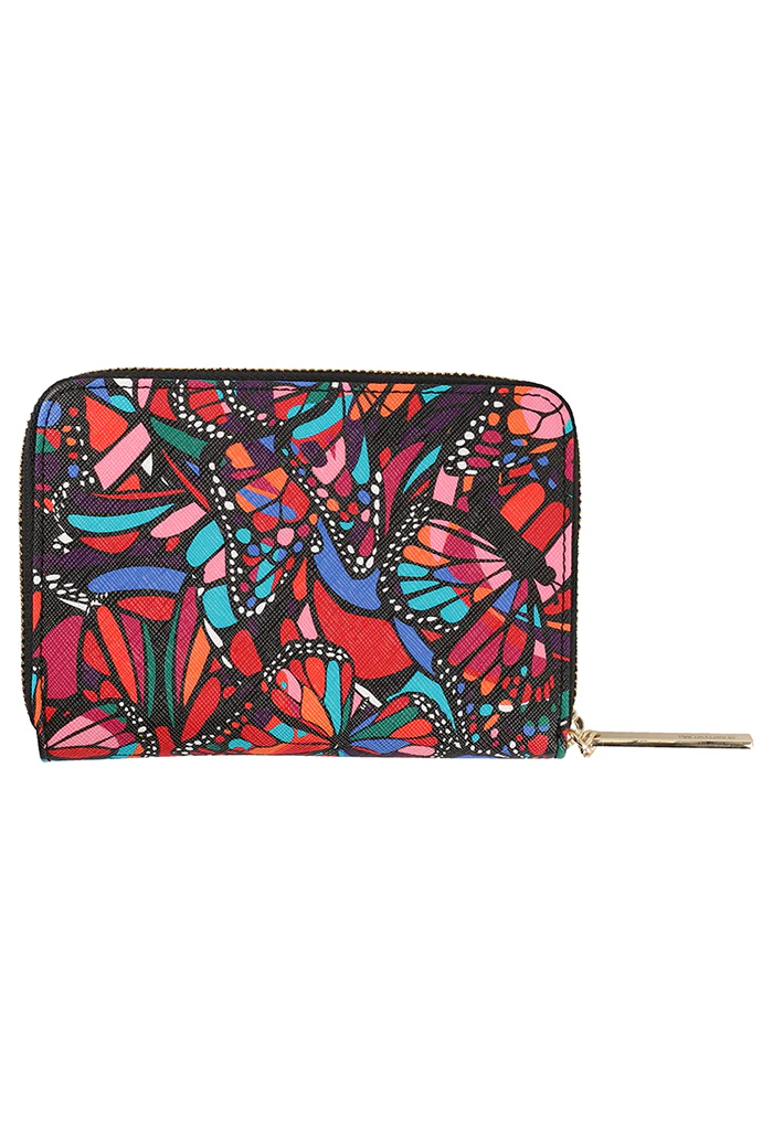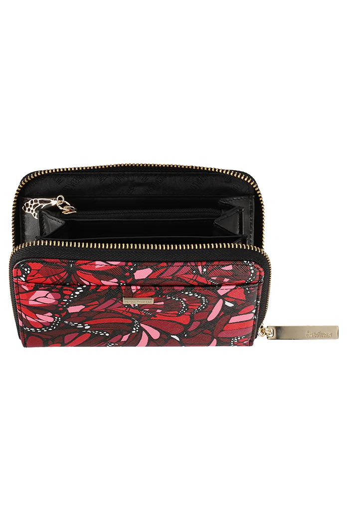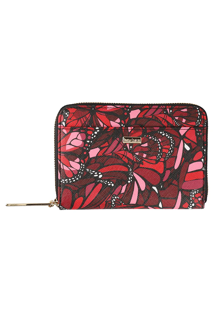 Cartera en acabado saffiano. Cuenta con cierre para almacenar monedas y compartimentos para tarjetas.