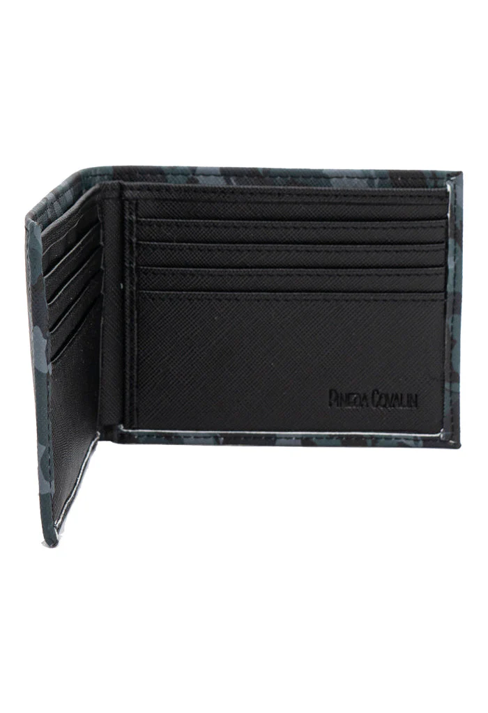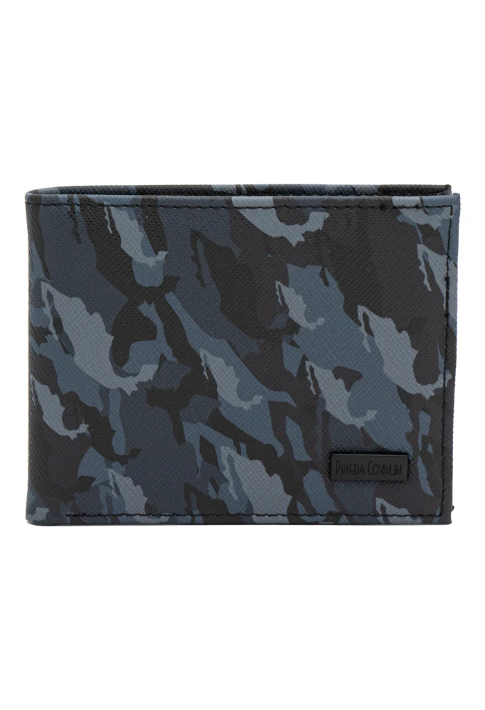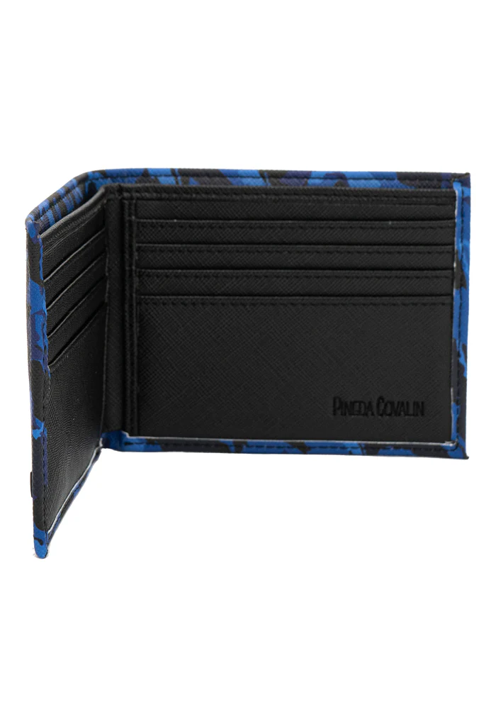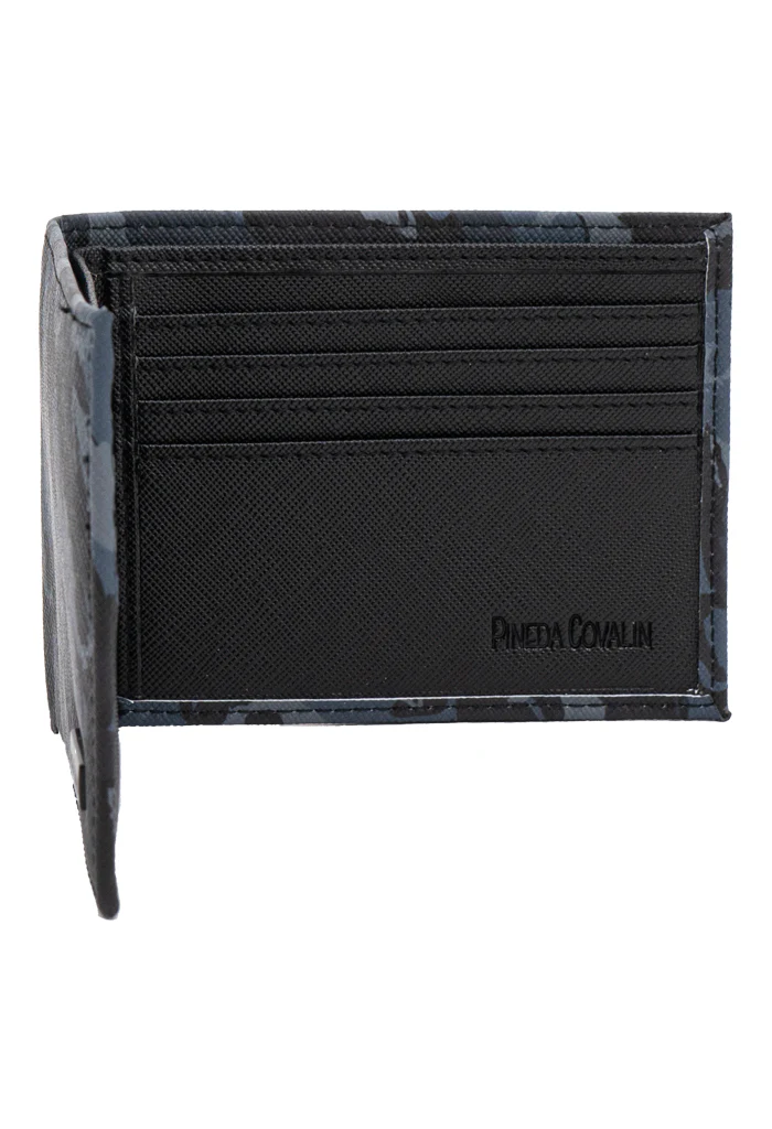 Cartera estampada para hombre con ocho tarjeteros interiores y espacio para billetes.