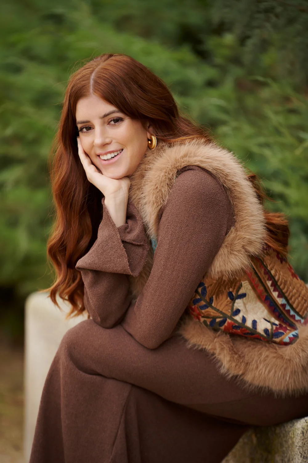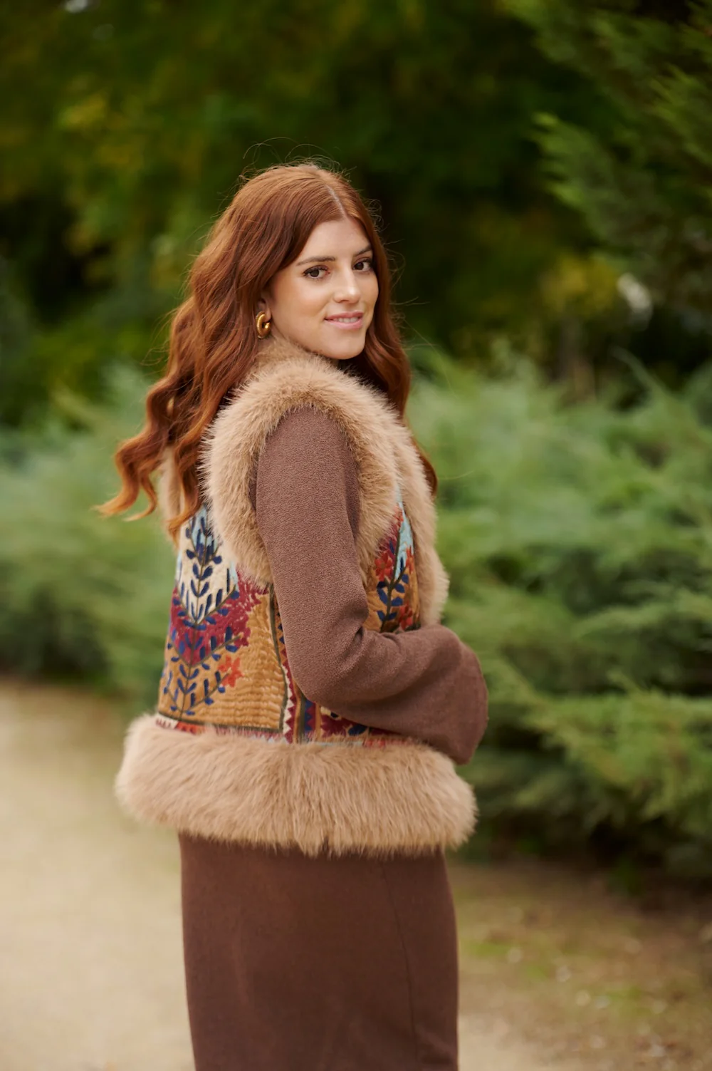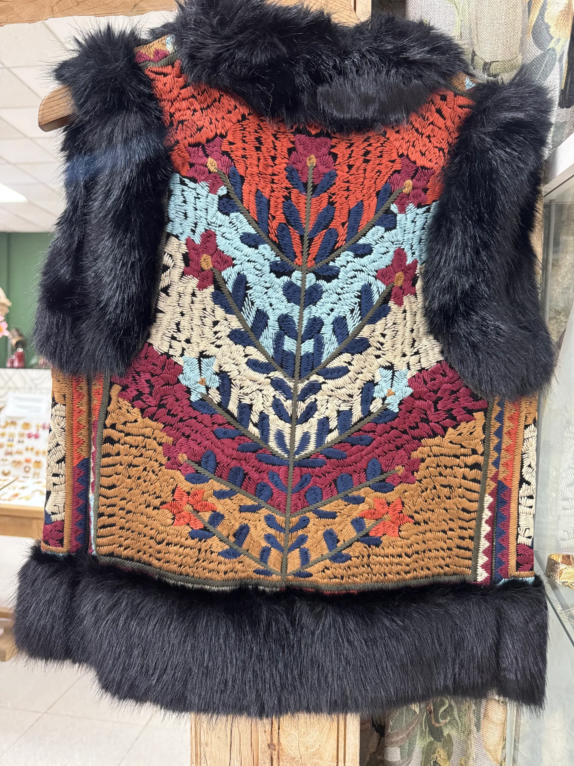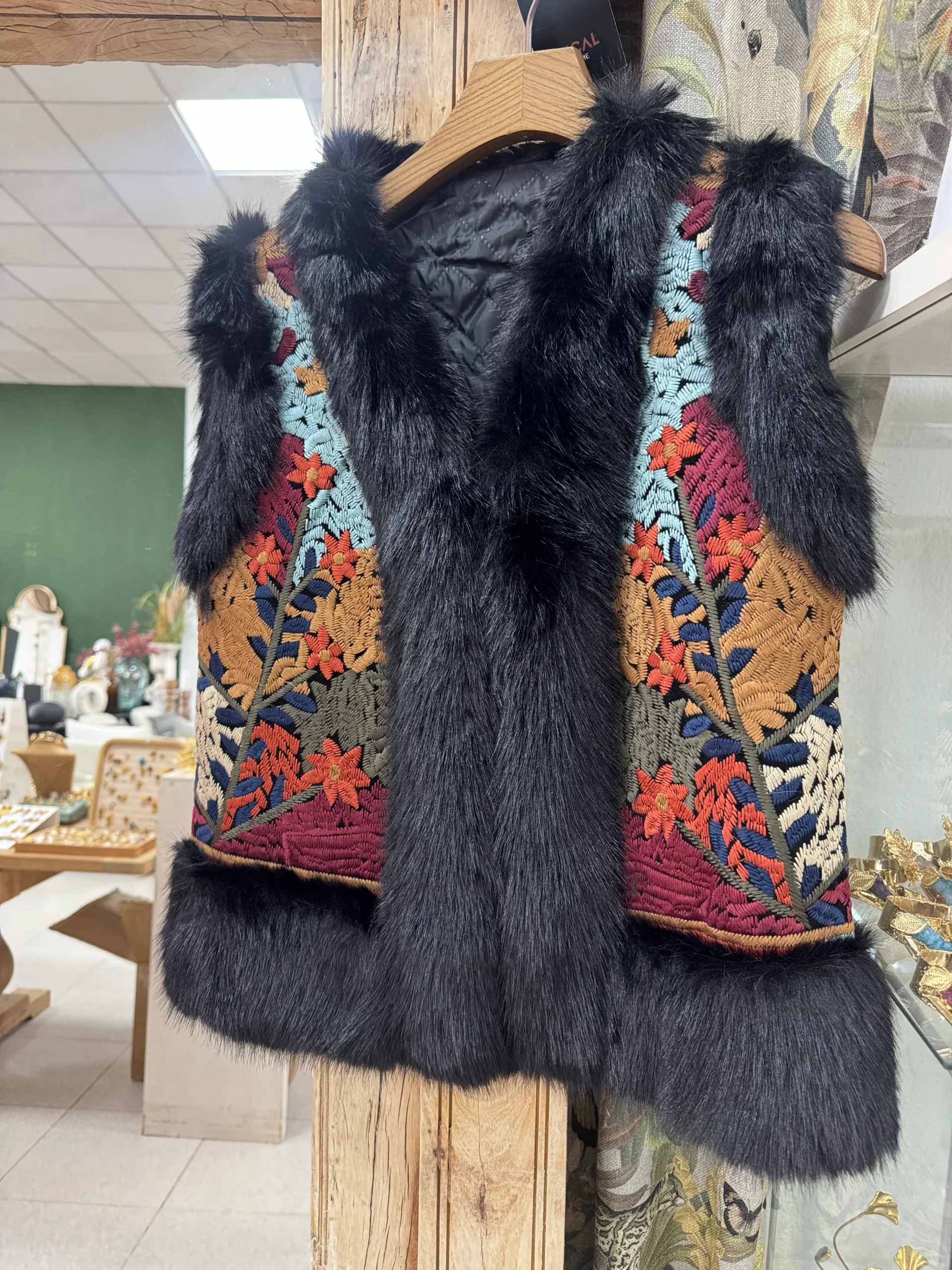 Chaleco enguatado en tejido bordado con Pelo sint茅tico en sus terminales. Talla 脷nica ( 32-40).