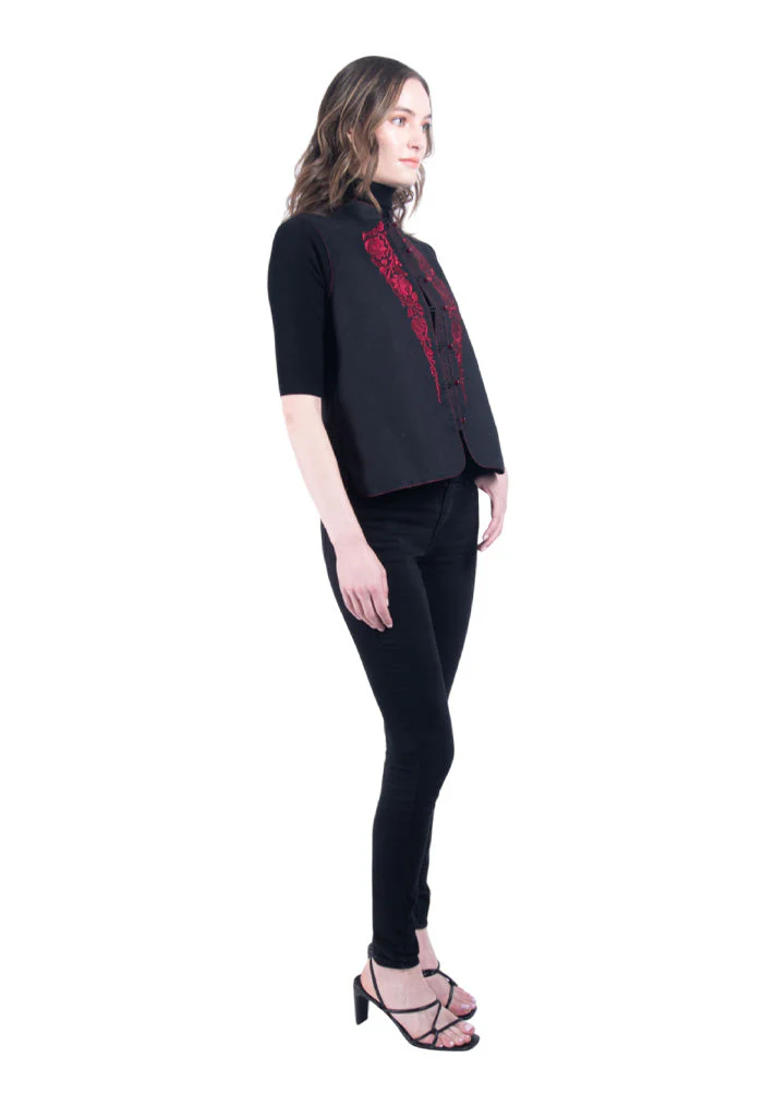 Chaleco liso en corte recto con aplicaciones bordadas a contraste