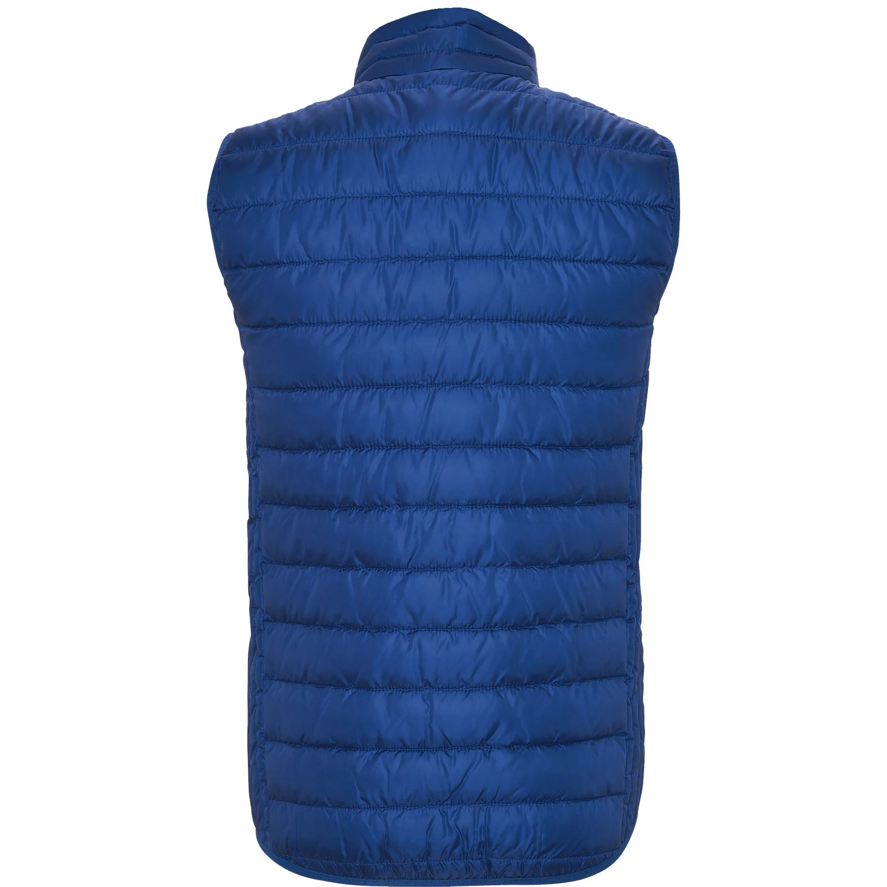 Chaleco niños PUFFY Azul con LOGO BORDADO acolchado con relleno tacto pluma. Dúo concept. Cremalleras invertidas a tono. Dos bolsillos frontales con cremalleras. Forro interior a contraste. Ribete elástico a tono en el bajo. Prenda ligera y plegable con bolsa de transporte incluida. 100% poliéster efecto pluma.