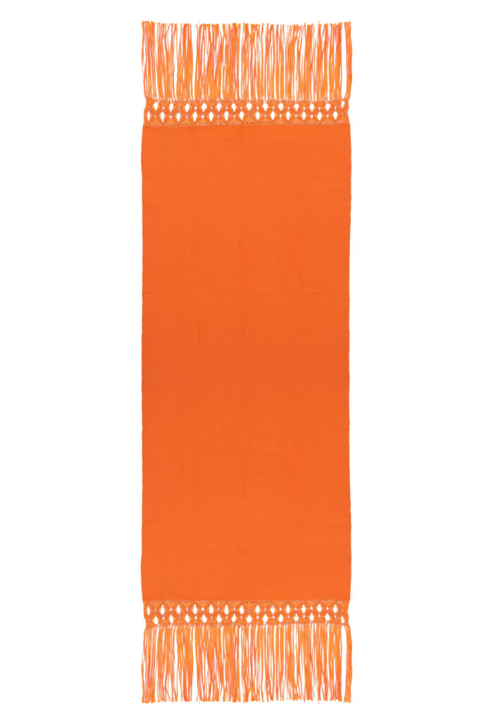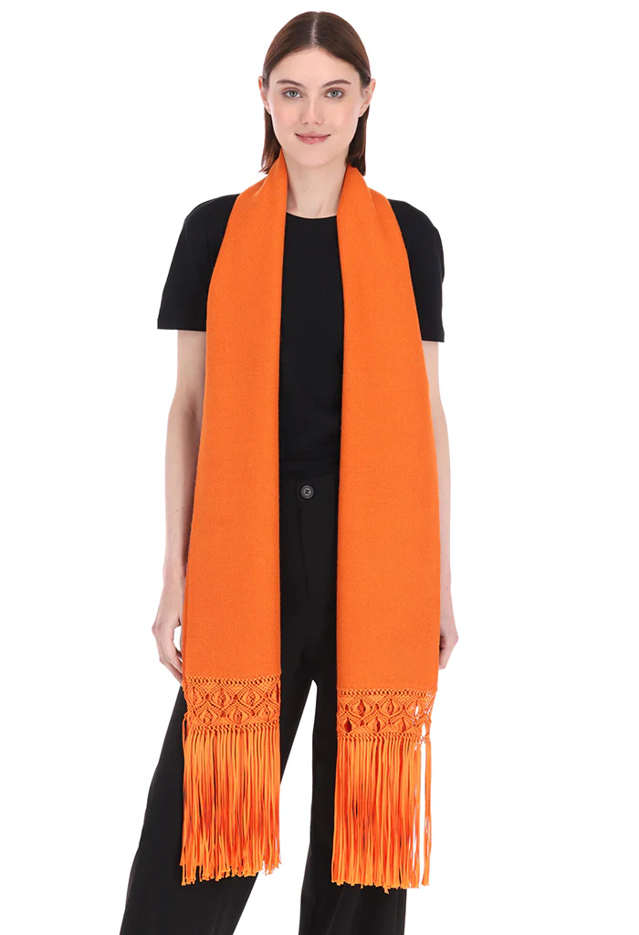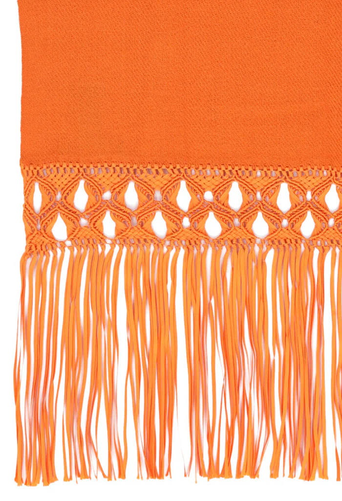 Chalina amplia con orilla tejida y flecos a tono. Puede utilizarse como capa.