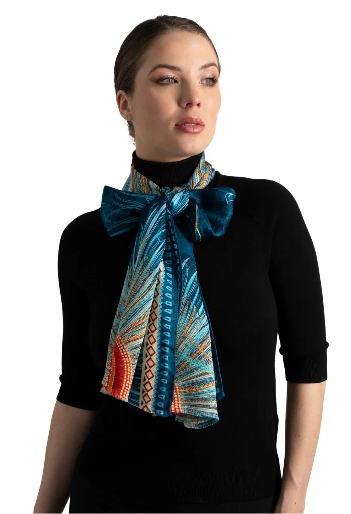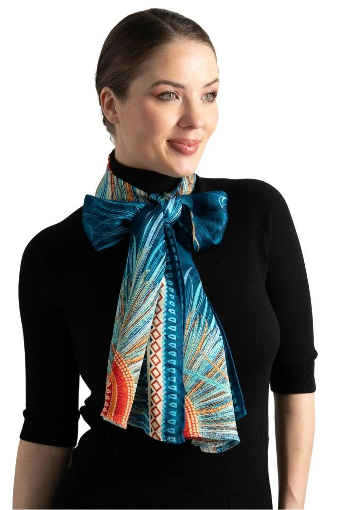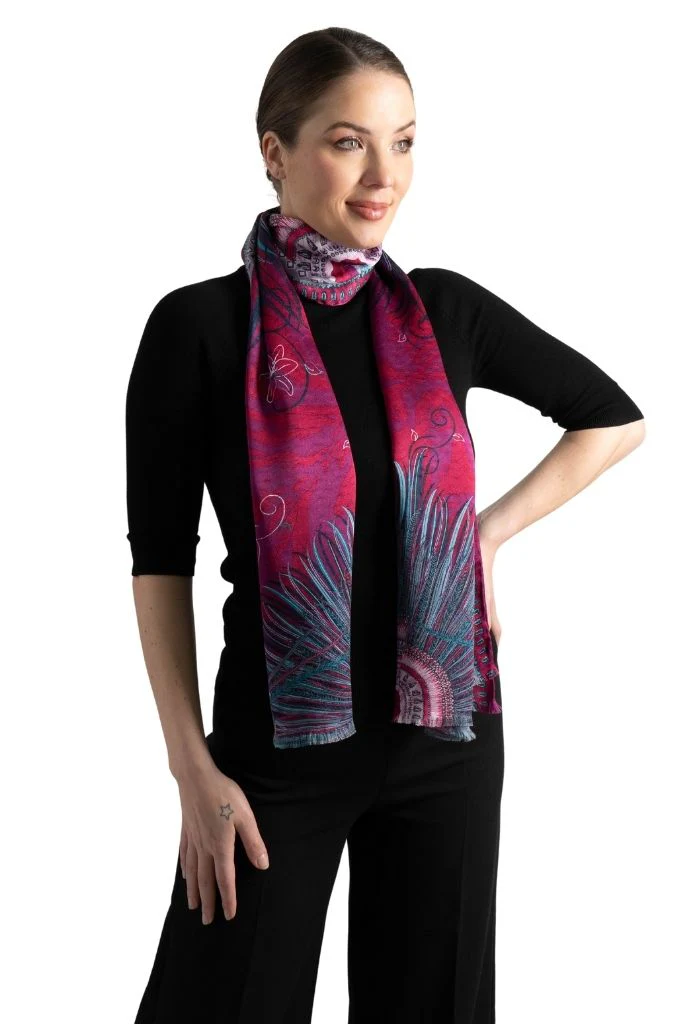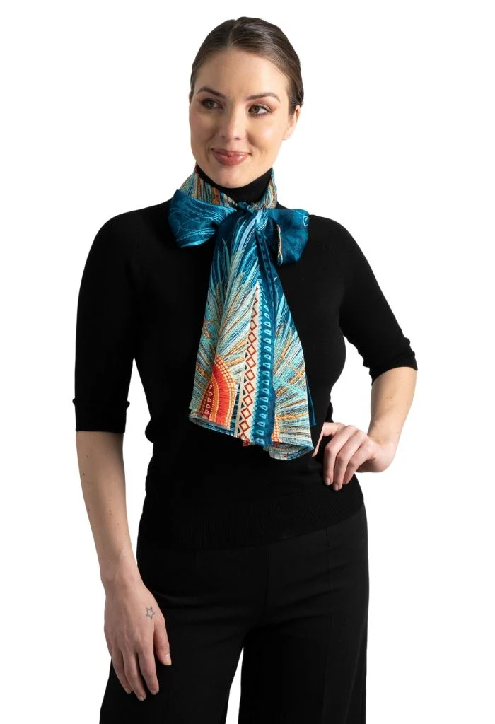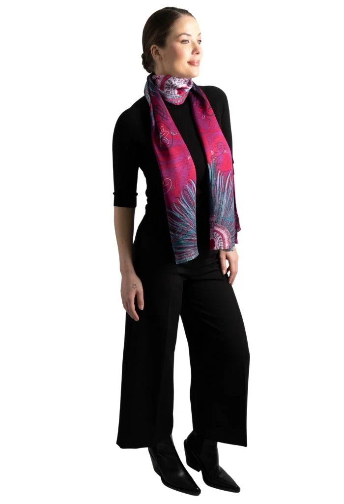 Chalina con orilla cosida y flecos deshilados a mano.