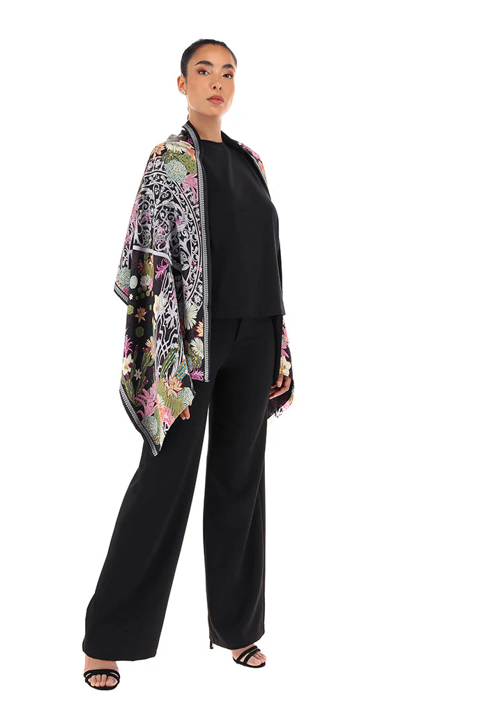 Cuenta con dos vistas: un lado muestra el diseño estampado y el otro es liso con tonos a juego, lo que le aporta mayor versatilidad a esta pieza.