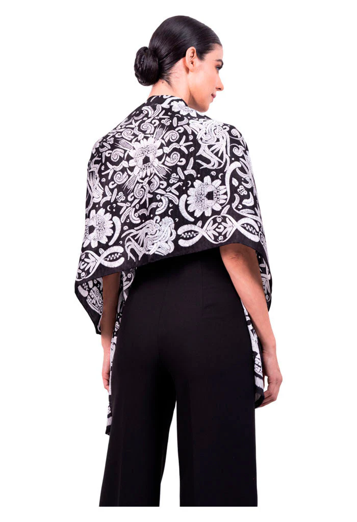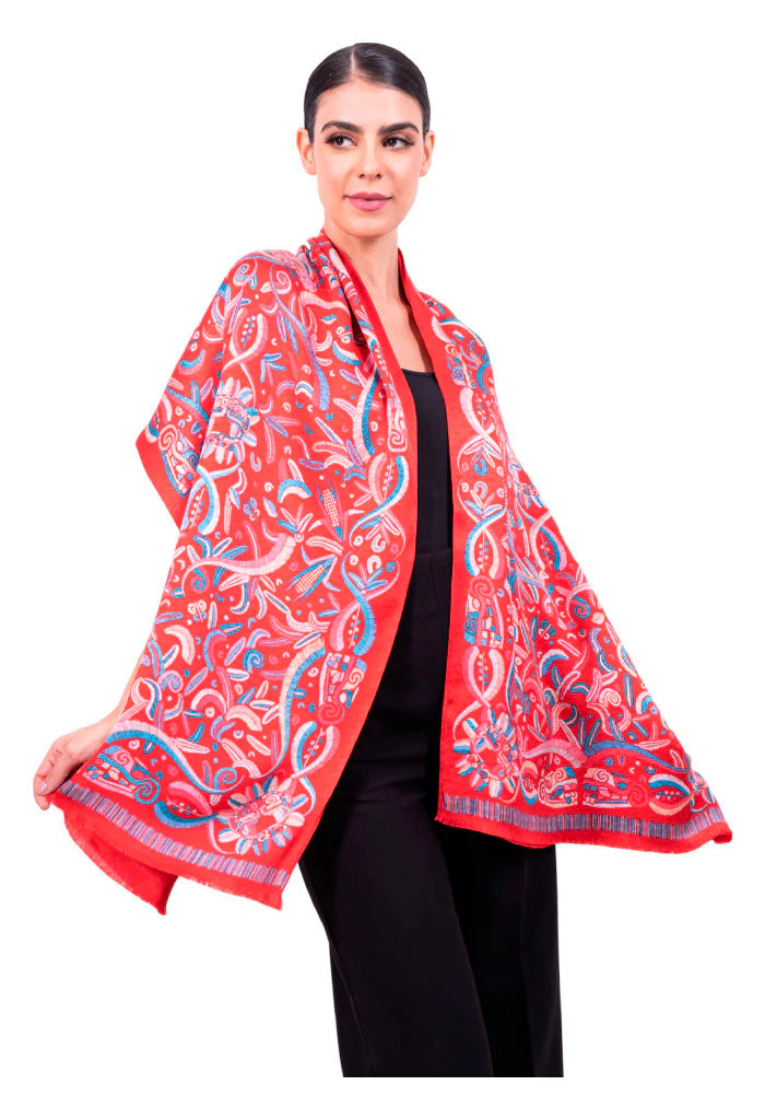 Chalina con orilla cosida y flecos deshilados a mano.