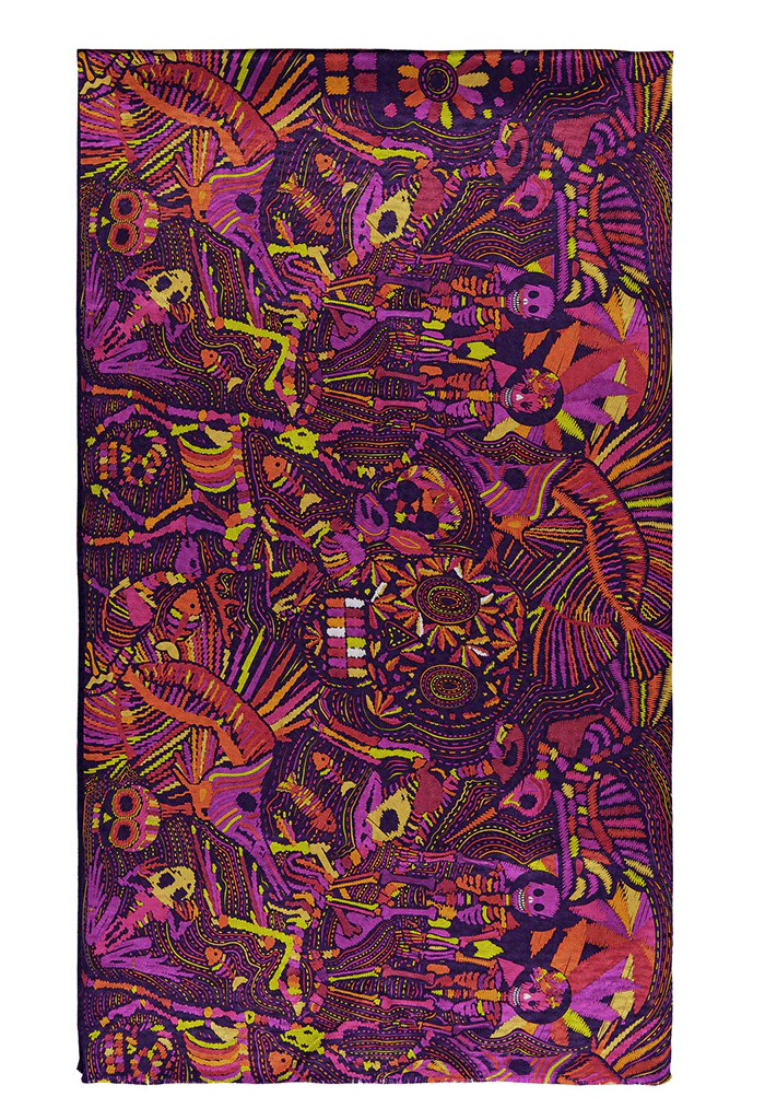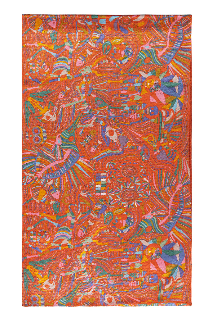 Chalina con orilla cosida y flecos deshilados a mano.
