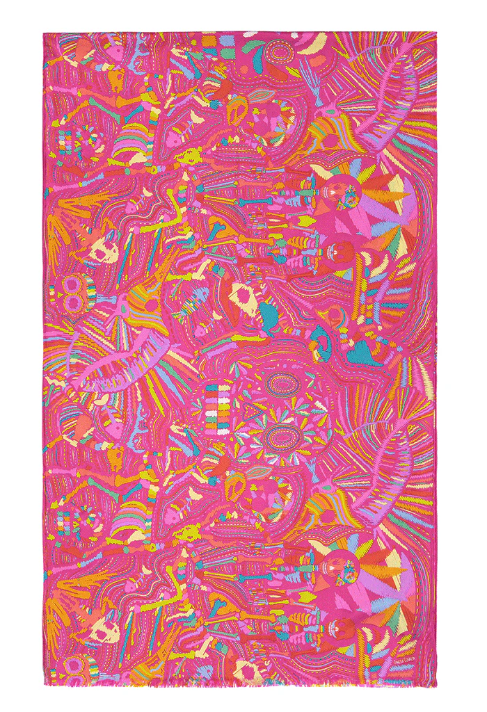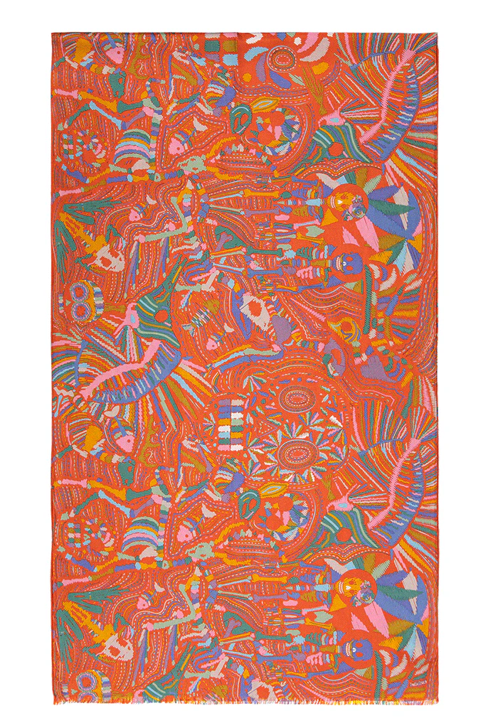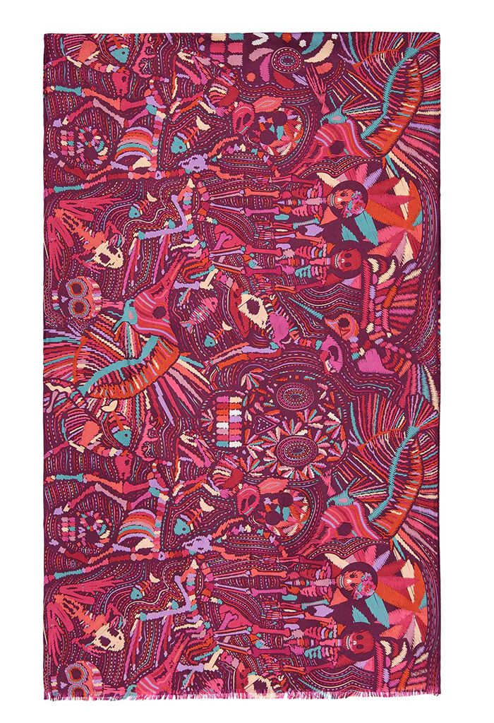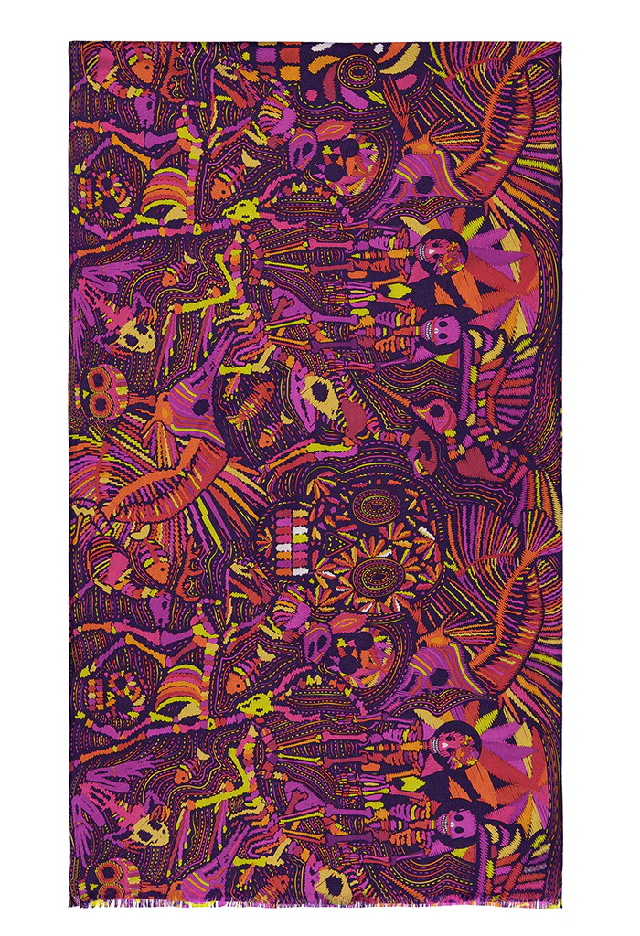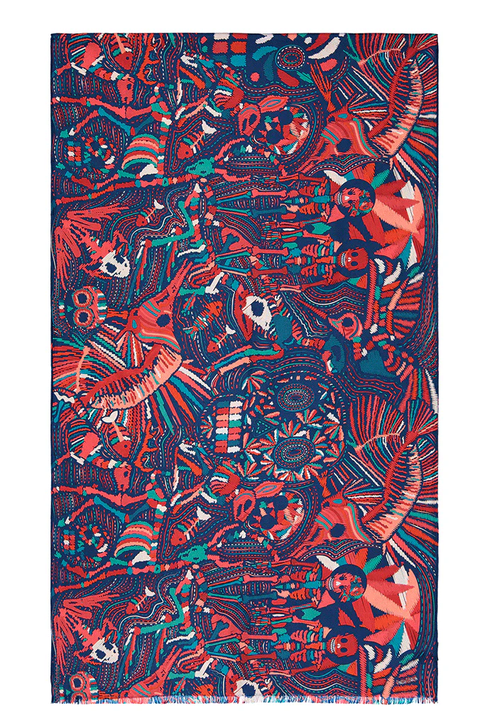 Chalina con orilla cosida y flecos deshilados a mano.