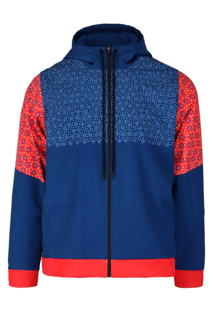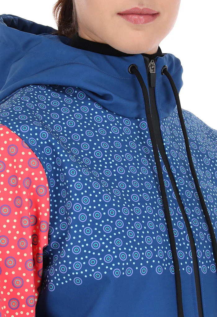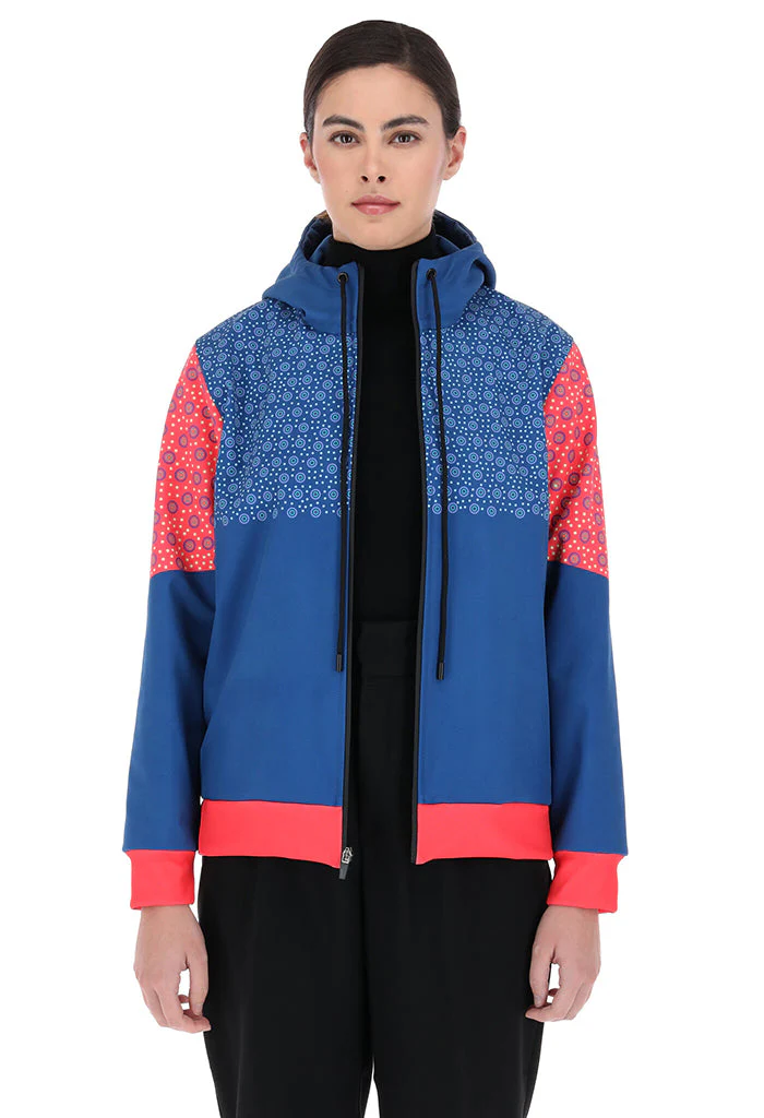 Tzontli, del náhuatl ‘cráneo’. Chamarra estilo deportivo para mujer con cierre tipo cremallera y capucha ajustable con jareta.
